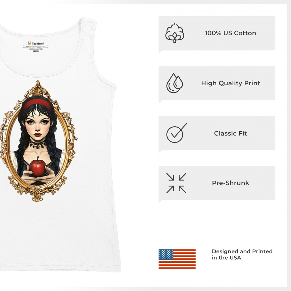 This enchanting design brings to life a gothic-inspired girl holding a red apple, encased in a regal vintage mirror frame. With elements pulled from Snow White, fairytales, and fantasy symbolism, it blends innocence and temptation with dark romanticism. Perfect for dreamers, collectors, and lovers of magical narratives and visual elegance.