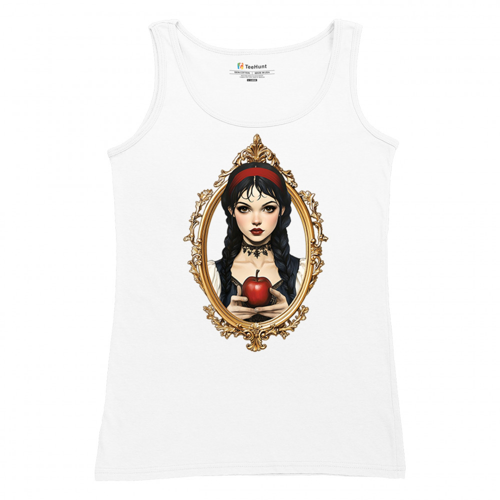 Dark fairytale design with red apple, gold frame, and Snow White vibes. A dreamy blend of fantasy, gothic style, and magical storytelling.