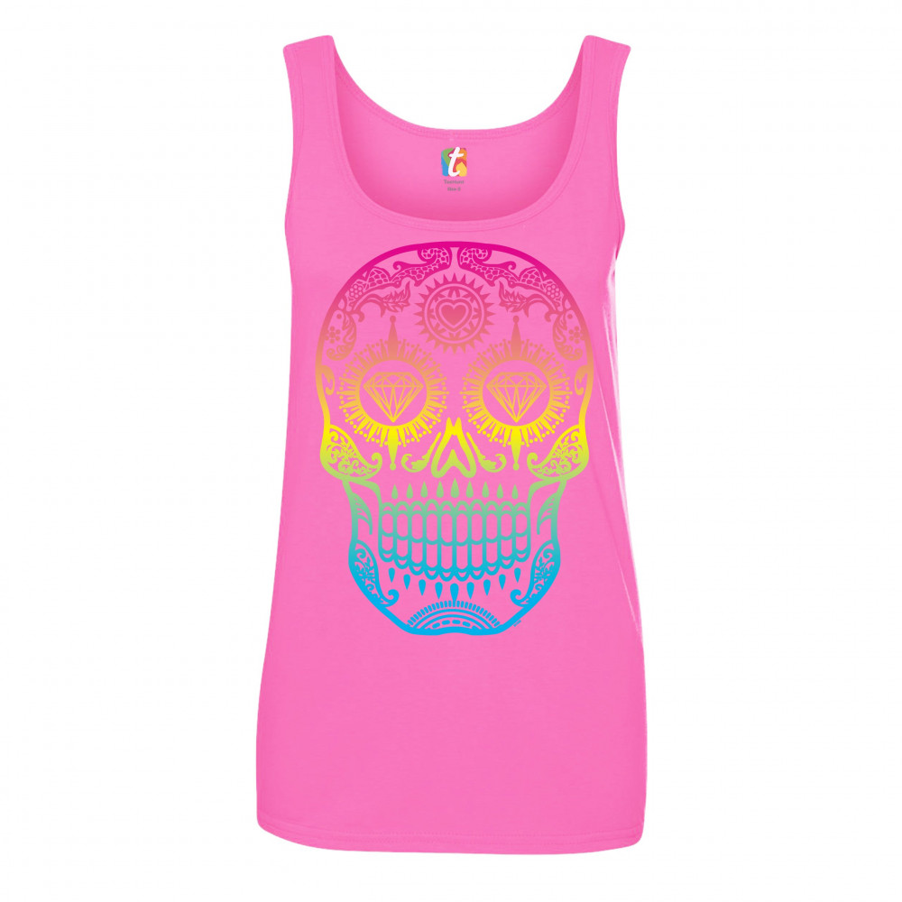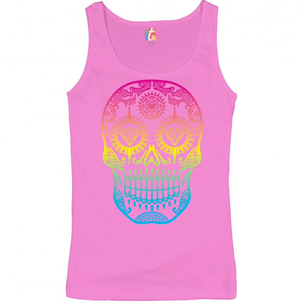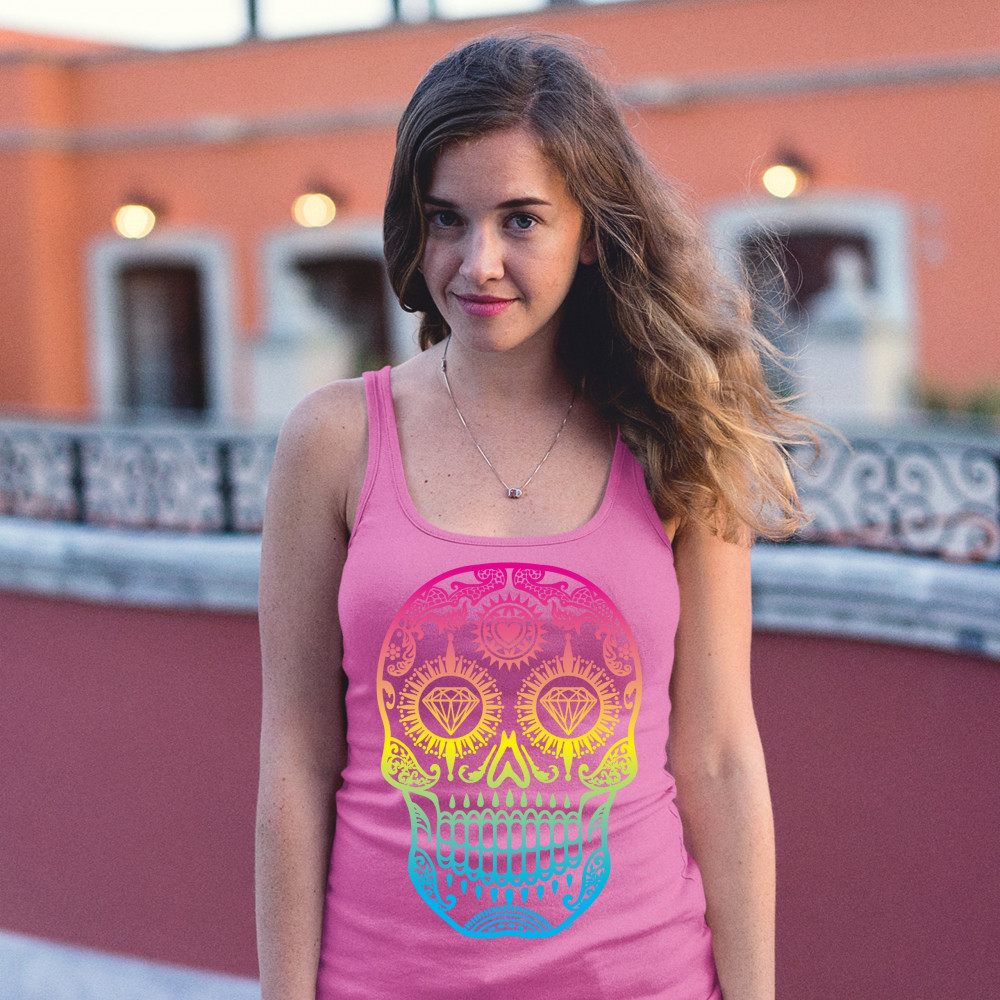 SUGAR SKULL CALAVERA DIAMOND EYES women's tank top day of the dead pink