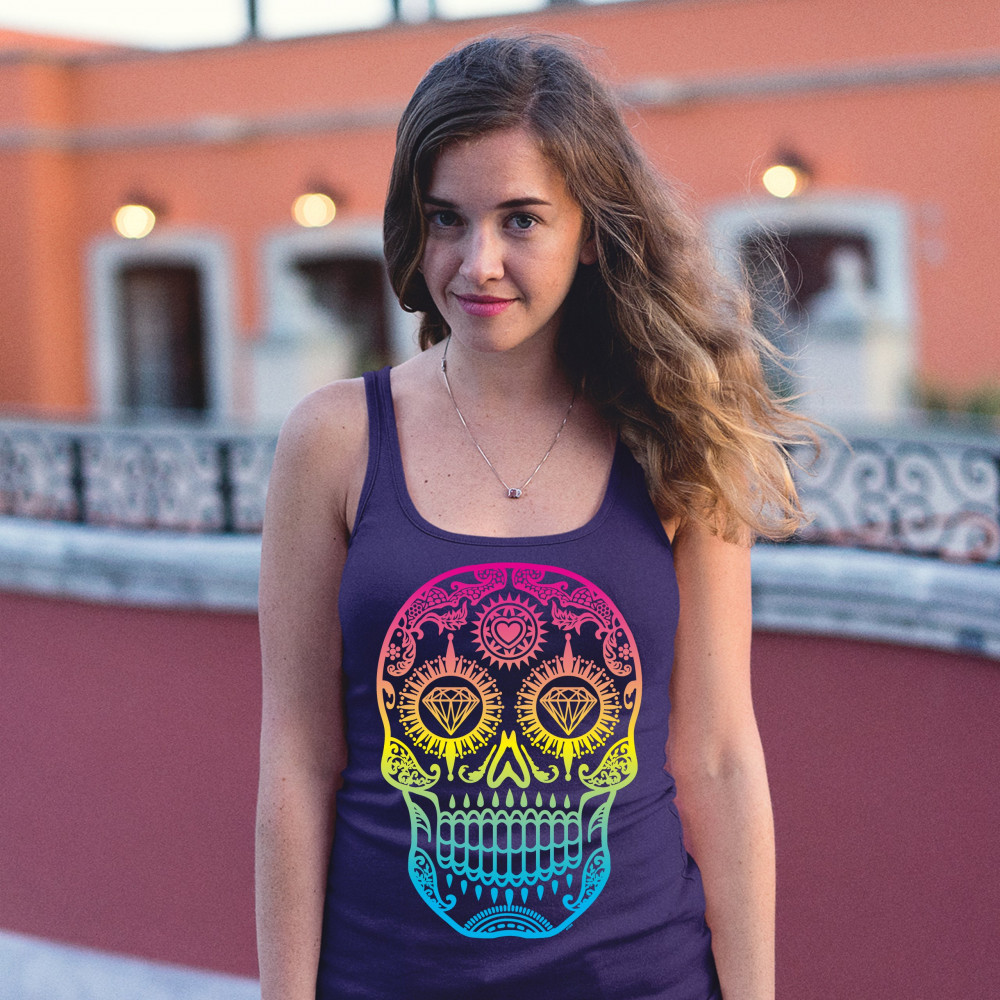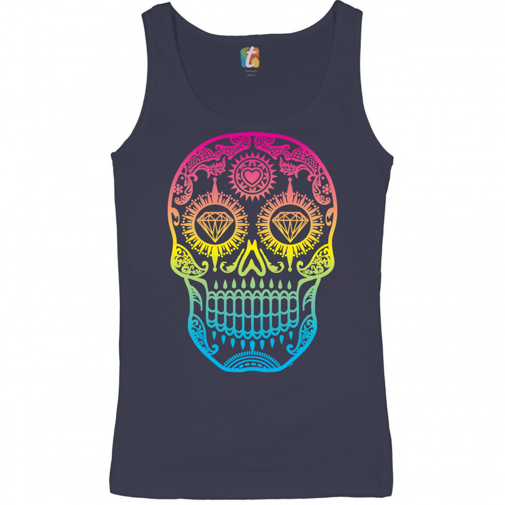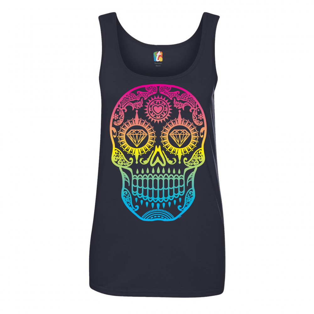 SUGAR SKULL CALAVERA DIAMOND EYES women's tank top day of the dead navy blue