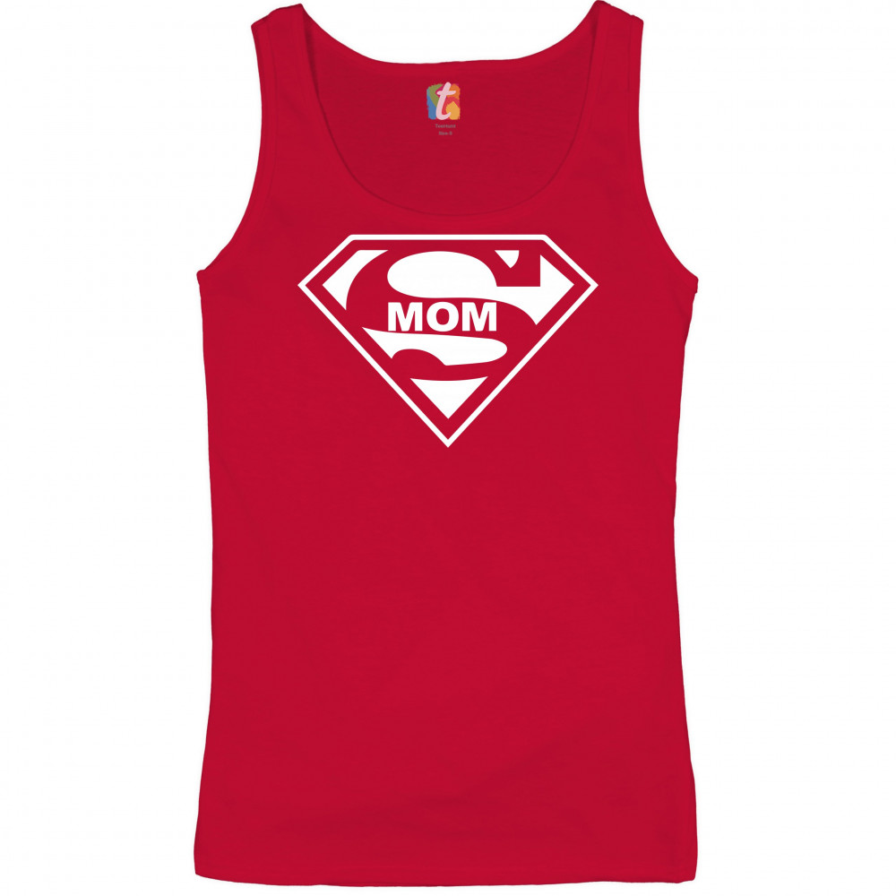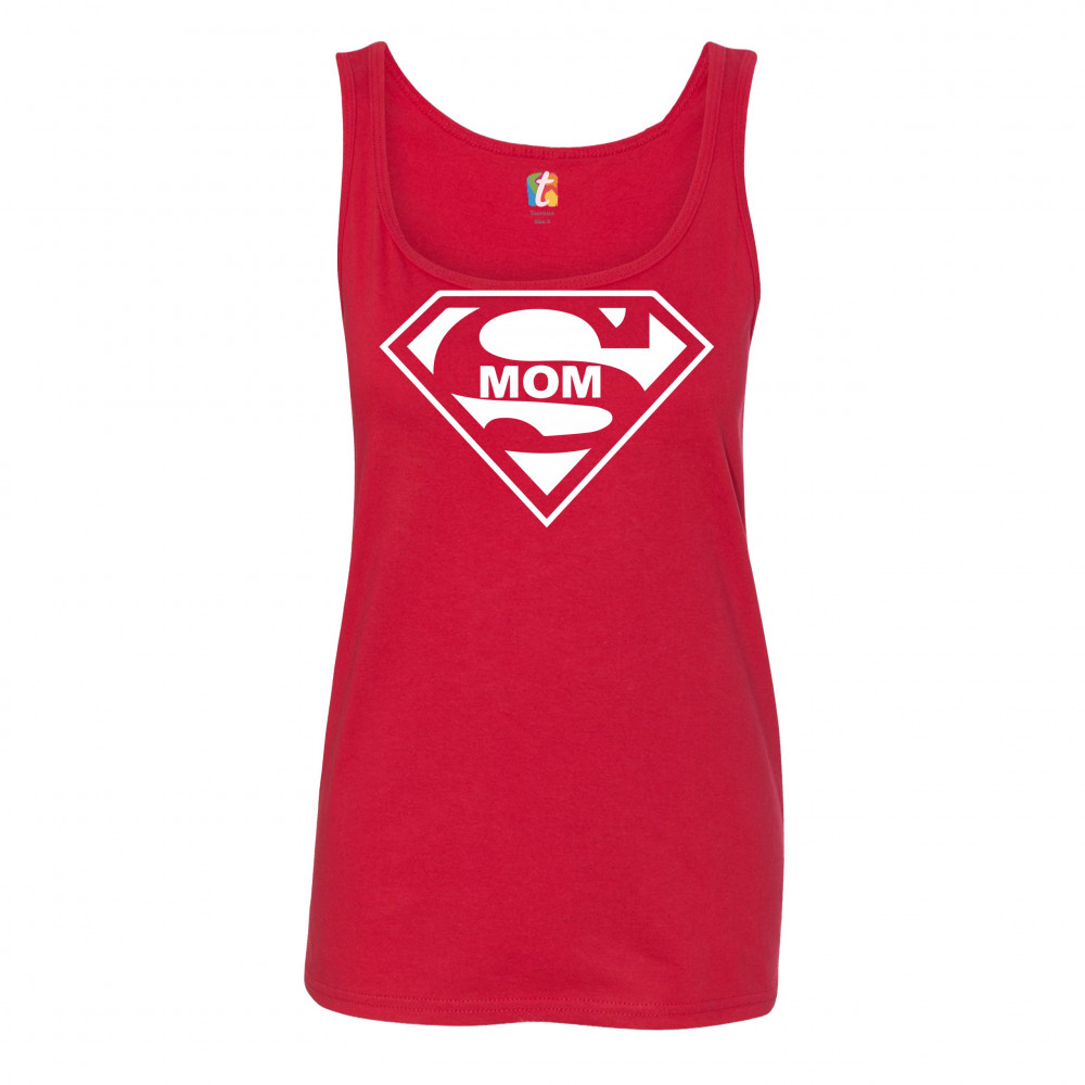 SUPER MOM FUNNY women's tank top superhero parody mother's day red