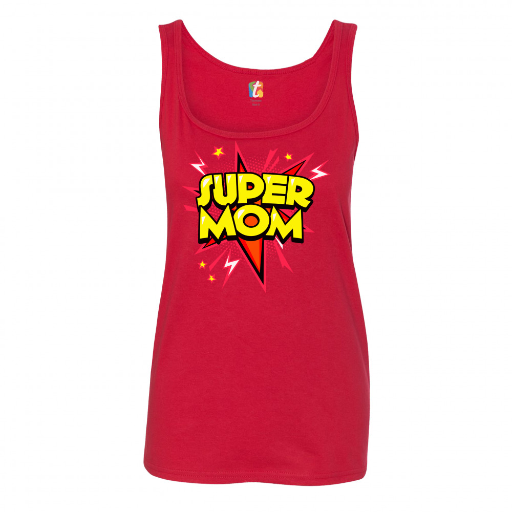 SUPER MOM women's tank top mother's day funny parody superhero blessed mama red