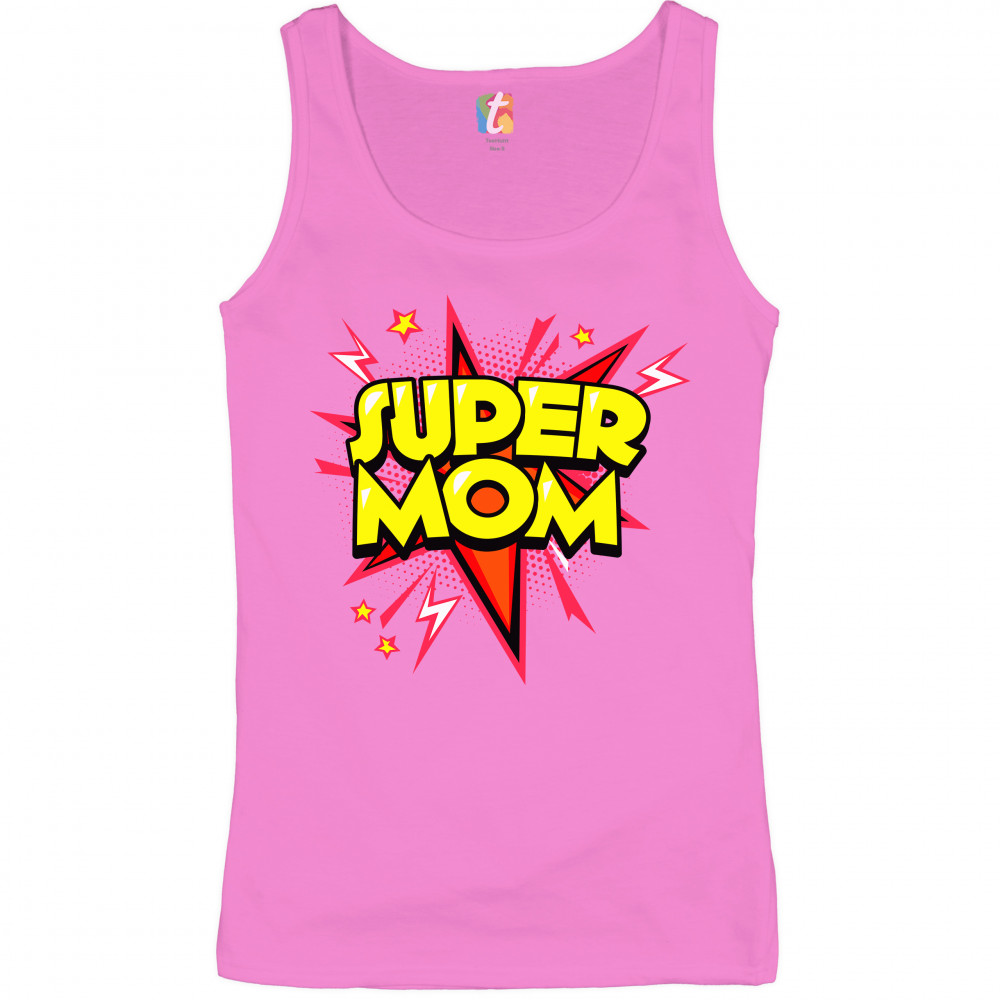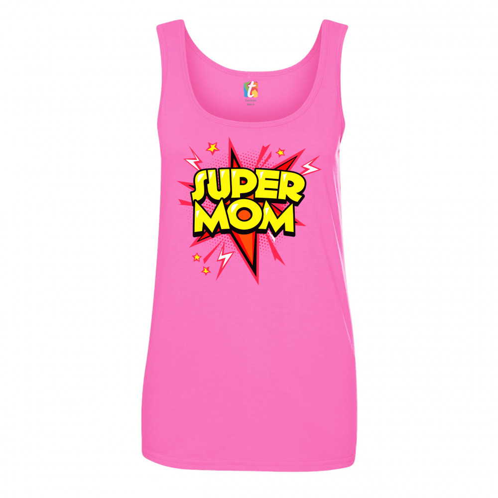 SUPER MOM women's tank top mother's day funny parody superhero blessed mama pink