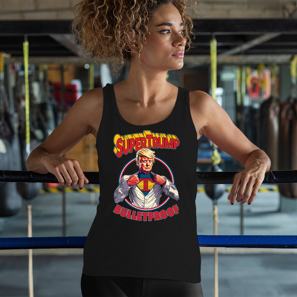SUPER TRUMP BULLETPROOF 2024 women's tank top maga make america great again black