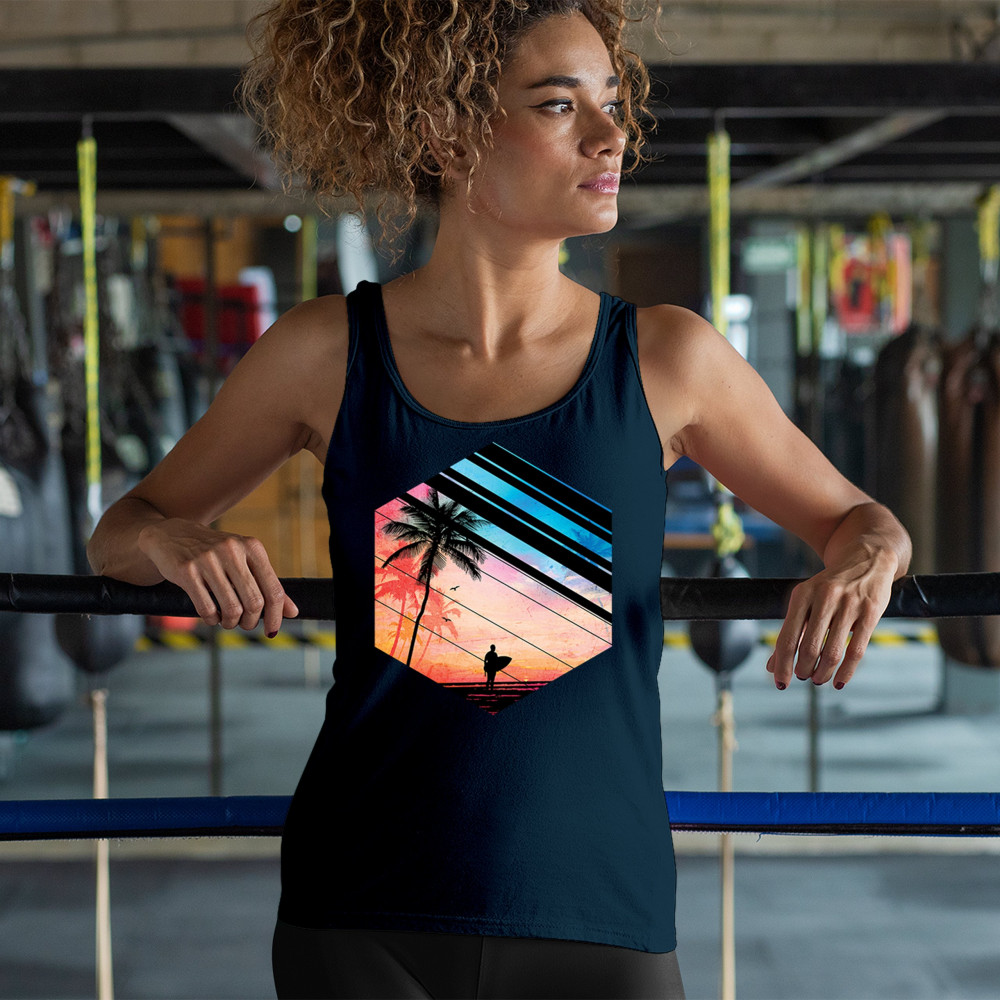 Catch the vibe of endless summer with our surf-inspired tee. Featuring silhouetted palms, warm gradients, and cool geometric shapes, it’s a visual journey from the urban grind to tropical tranquility. This tee is for the soul surfers and dreamers, made to be as enduring as the memories of your last wave. It's more than apparel—it’s a horizon of possibilities. Add this staple to your collection and let the good times roll.