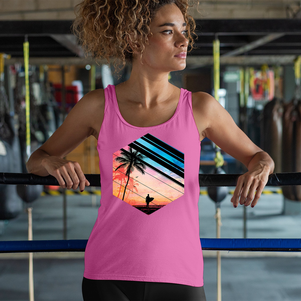 Catch the vibe of endless summer with our surf-inspired tee. Featuring silhouetted palms, warm gradients, and cool geometric shapes, it’s a visual journey from the urban grind to tropical tranquility. This tee is for the soul surfers and dreamers, made to be as enduring as the memories of your last wave. It's more than apparel—it’s a horizon of possibilities. Add this staple to your collection and let the good times roll.