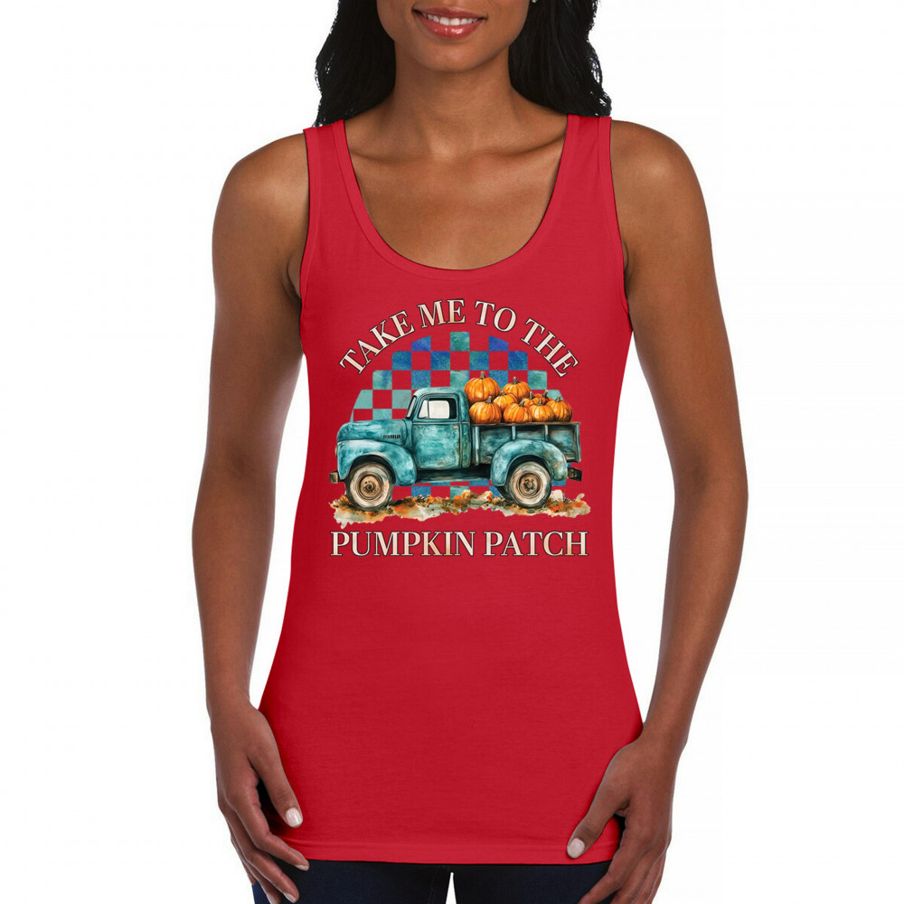 Celebrate autumn in style with the "Take Me to the Pumpkin Patch" design, featuring a vintage truck and festive pumpkins—perfect for fall lovers!