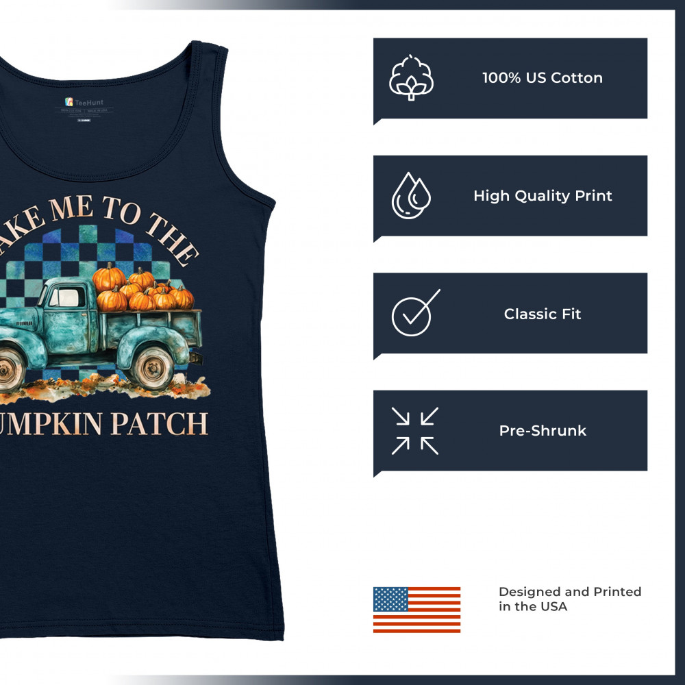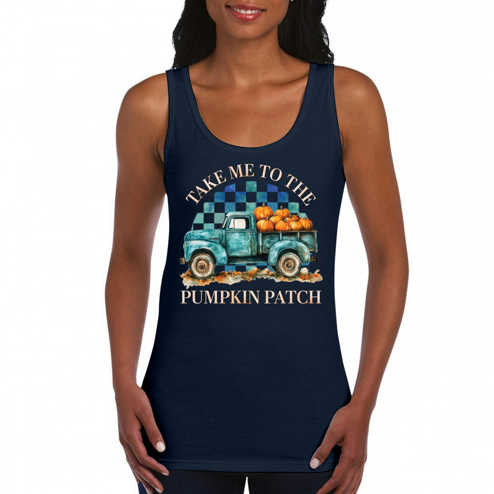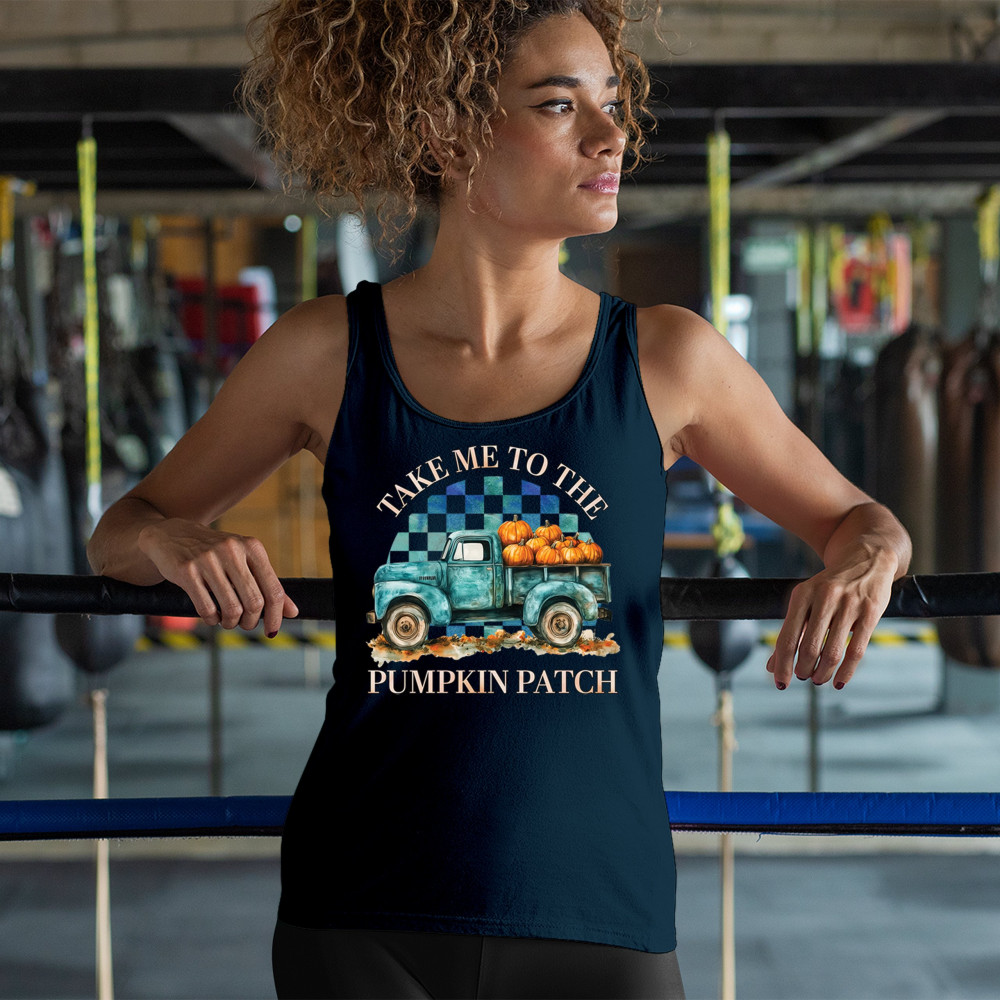Celebrate autumn in style with the "Take Me to the Pumpkin Patch" design, featuring a vintage truck and festive pumpkins—perfect for fall lovers!