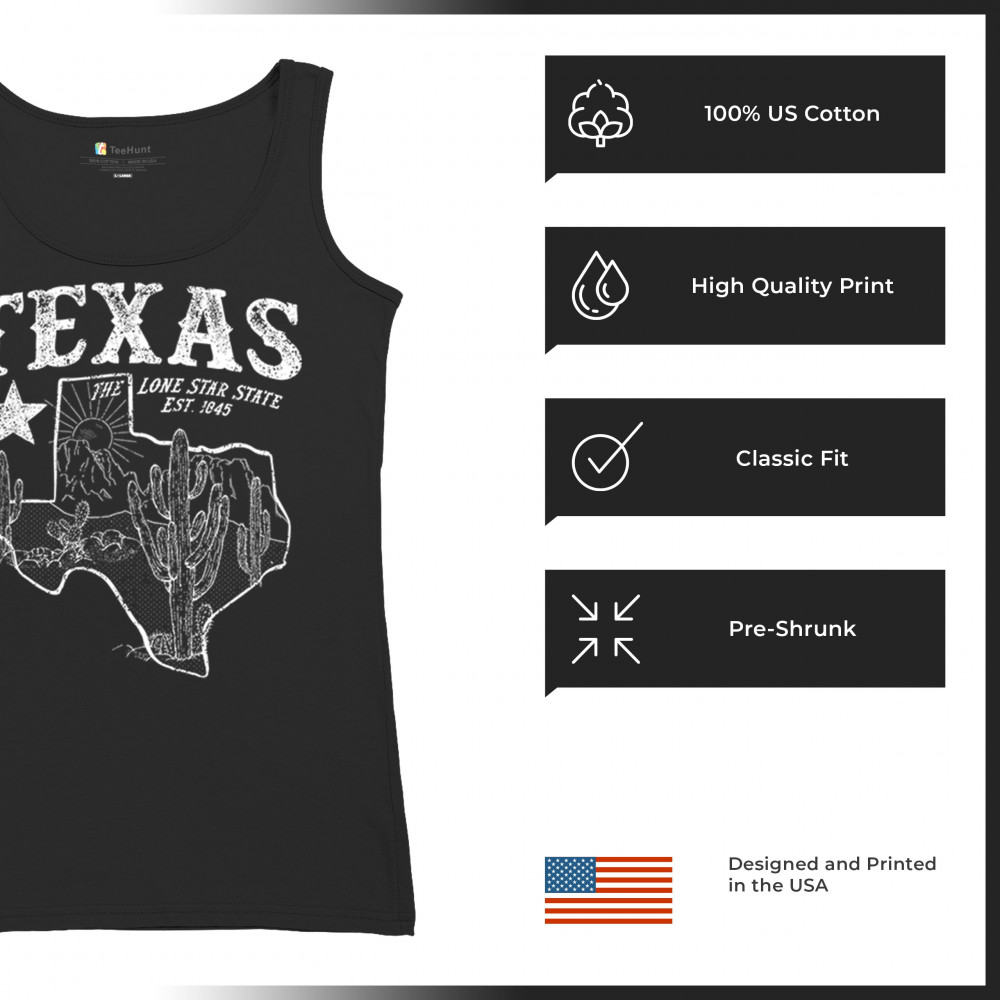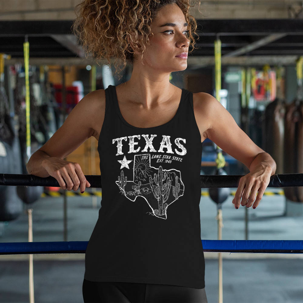 TEXAS LONE STAR STATE PRIDE women's tank top vintage map don't mess with tx black