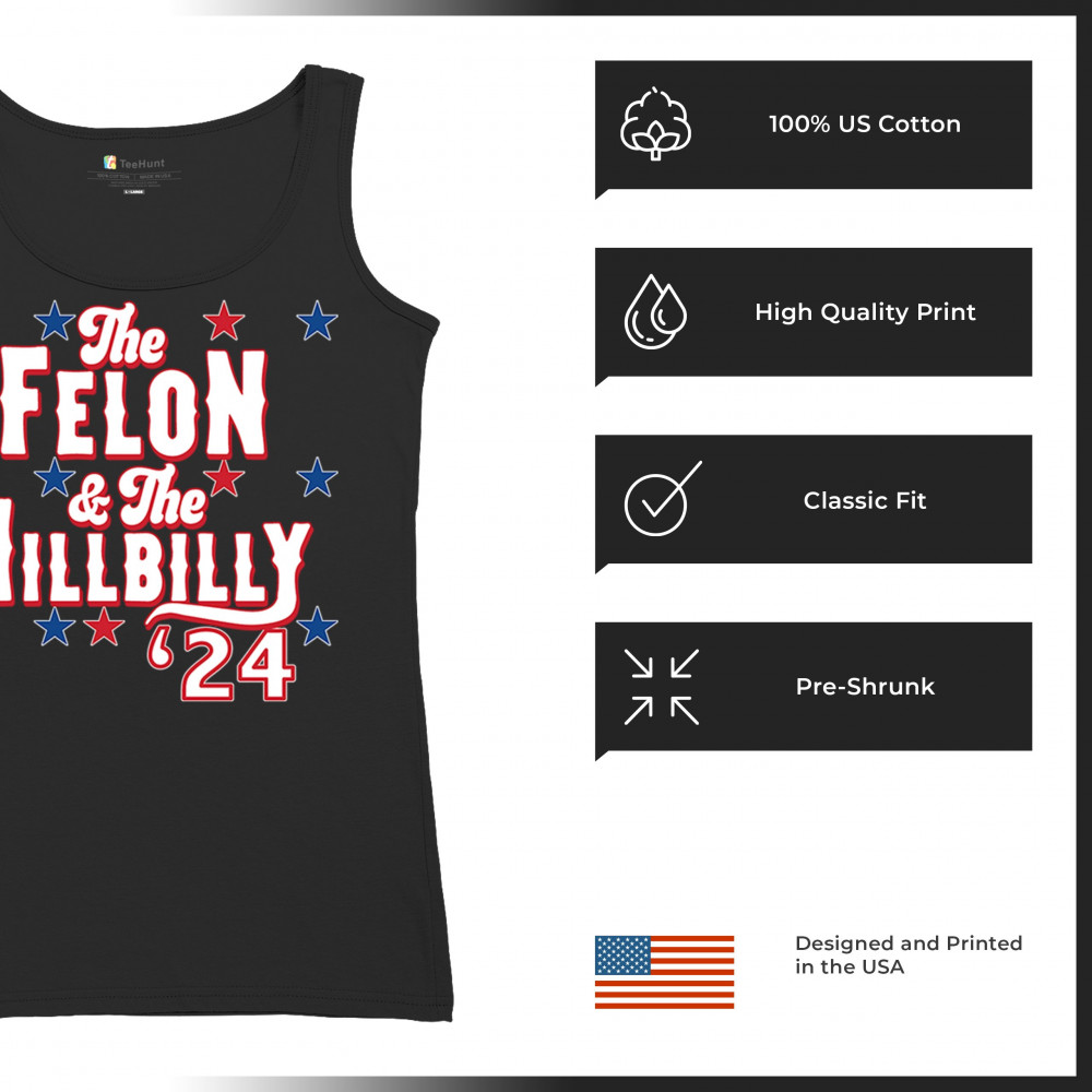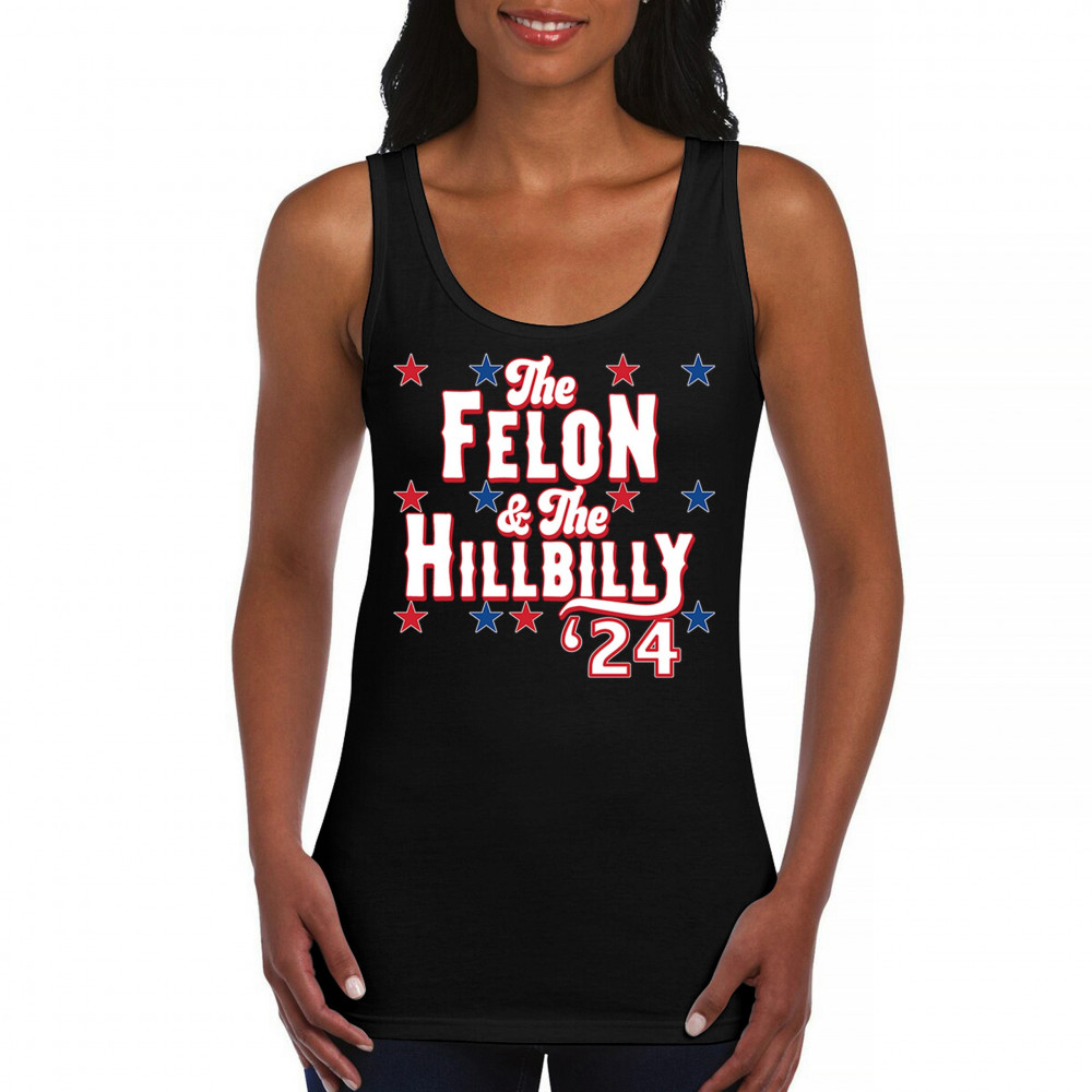 THE FELON AND THE HILLBILLY 24 VOTE TRUMP VANCE women's tank top maga 2024 black