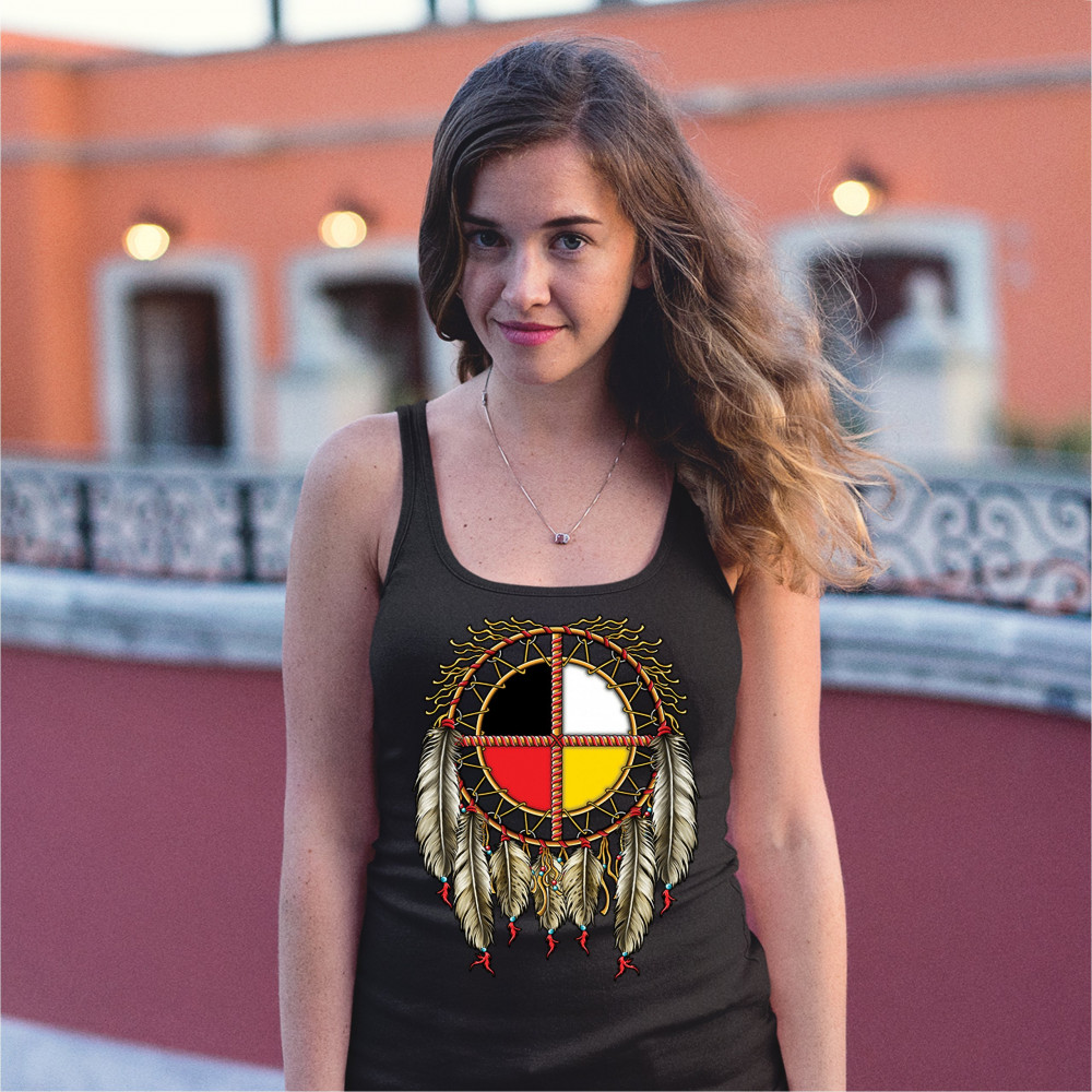 THE MEDICINE WHEEL DREAMCATCHER women's tank top native american symbol black