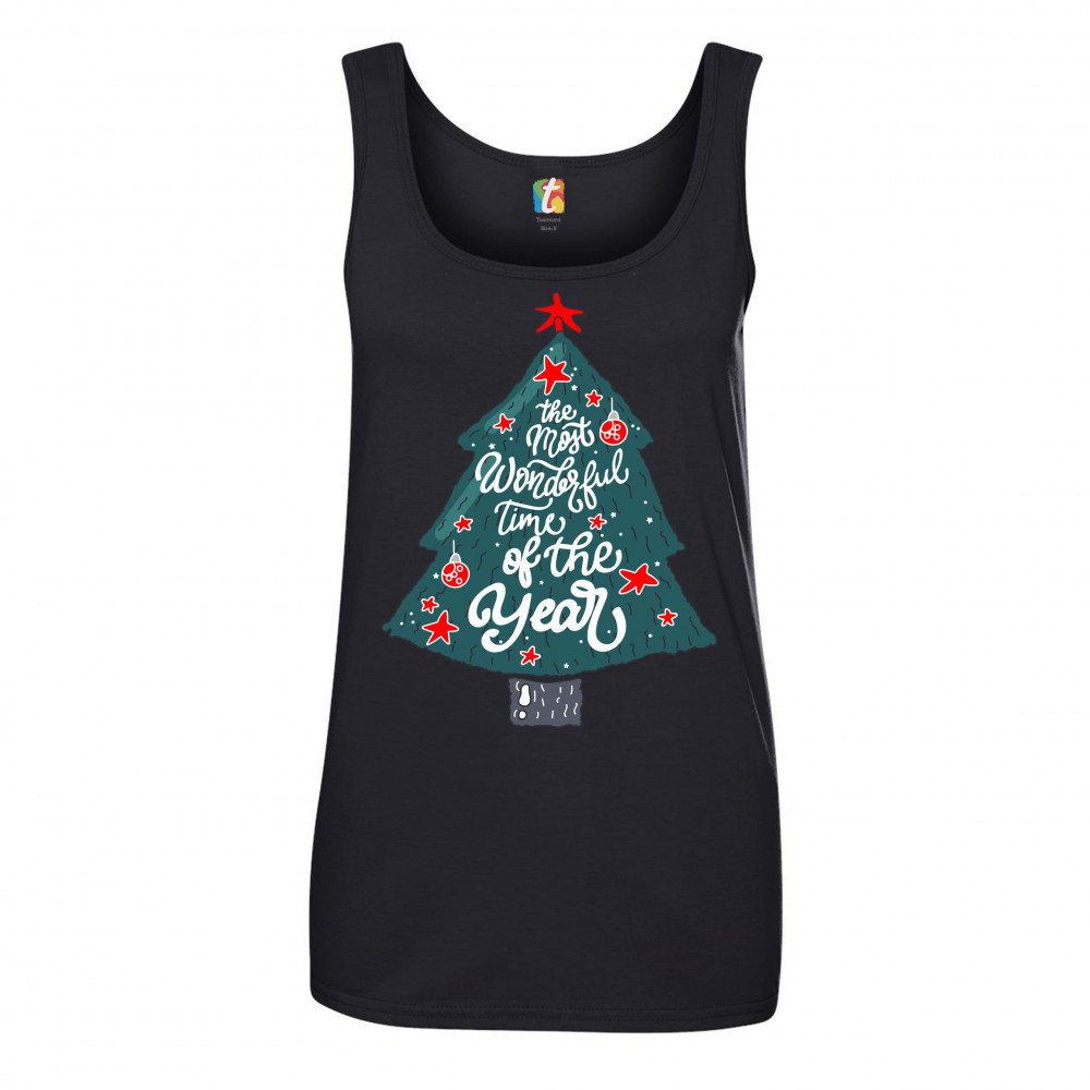 THE MOST WONDERFUL TIME OF THE YEAR women's tank top christmas tree xmas black