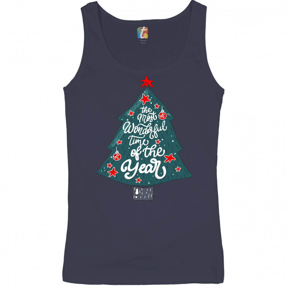THE MOST WONDERFUL TIME OF THE YEAR women's tank top christmas tree xmas navy blue