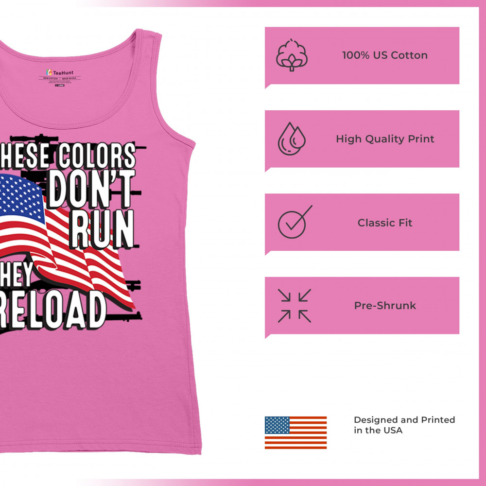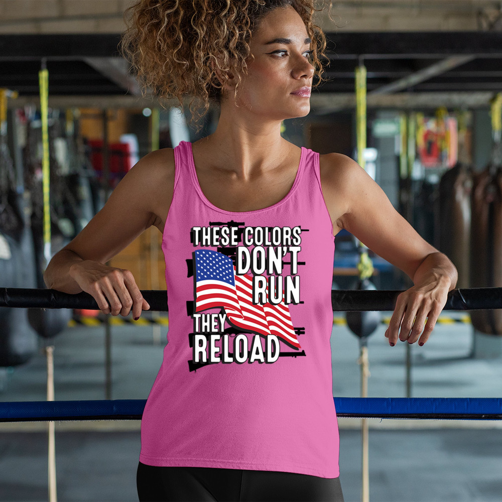 Discover the tee that boldly proclaims American resilience and liberty: 'These Colors Don't Run, They Reload'—a must-have for patriots and veterans.