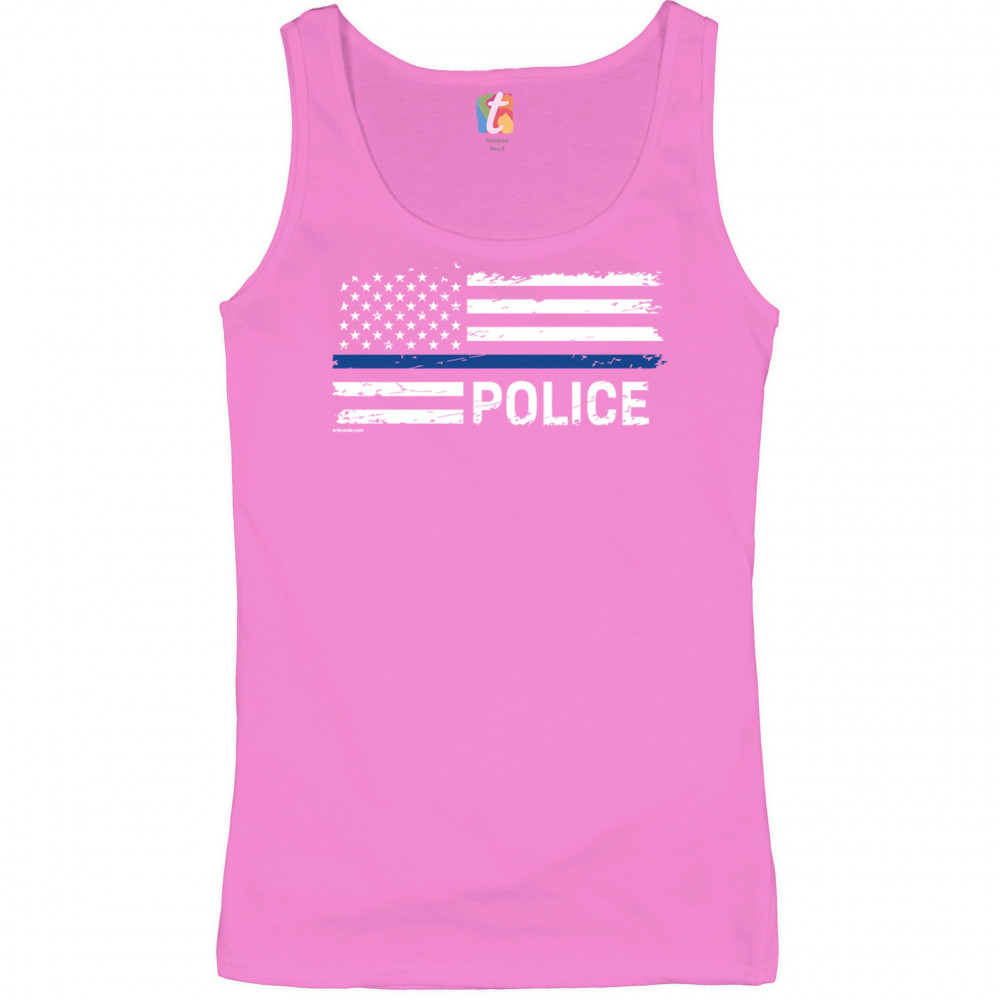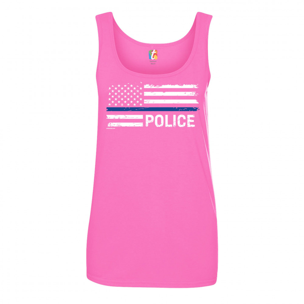 THIN BLUE LINE AMERICAN FLAG women's tank top police law enforcement pink
