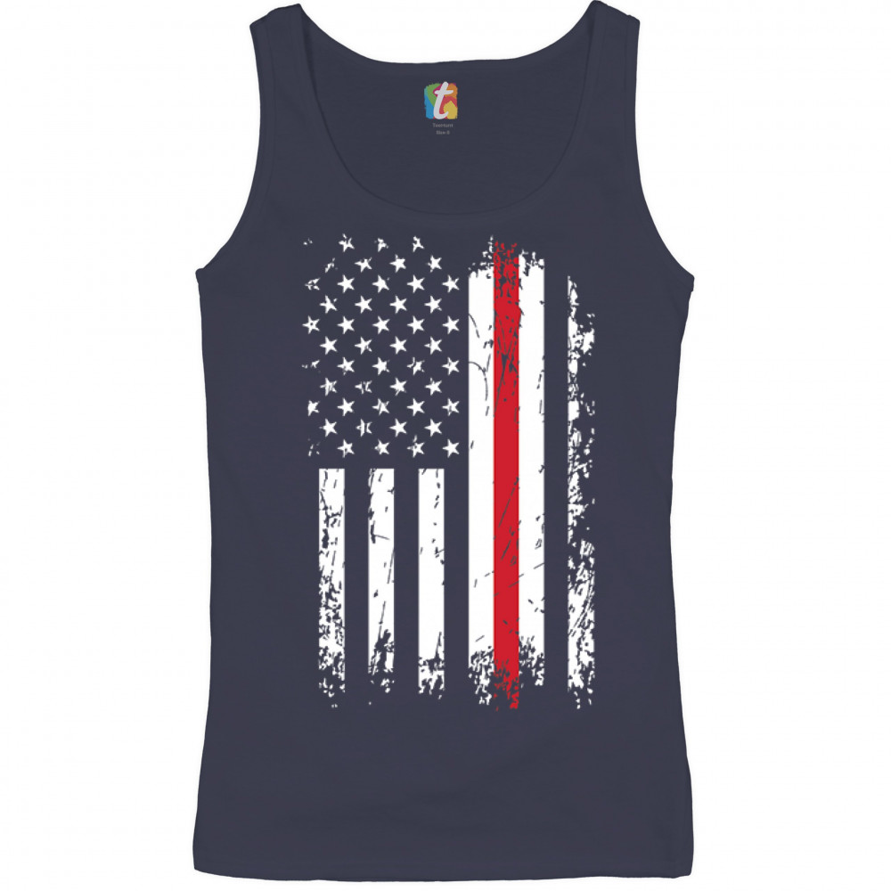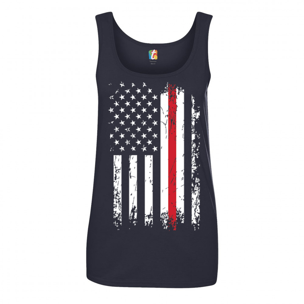 THIN RED LINE women's tank top american flag firefighter fire department navy blue