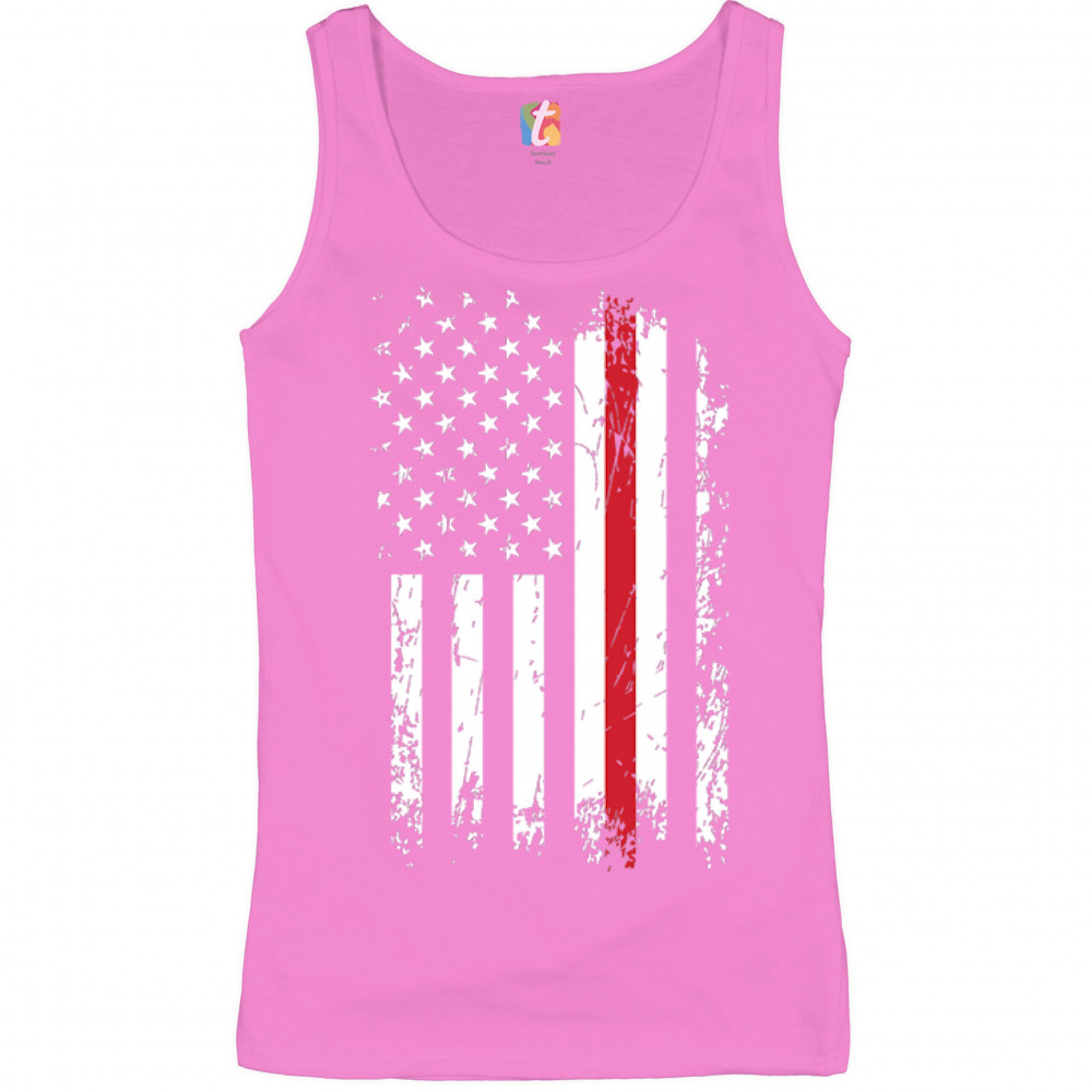 THIN RED LINE women's tank top american flag firefighter fire department pink