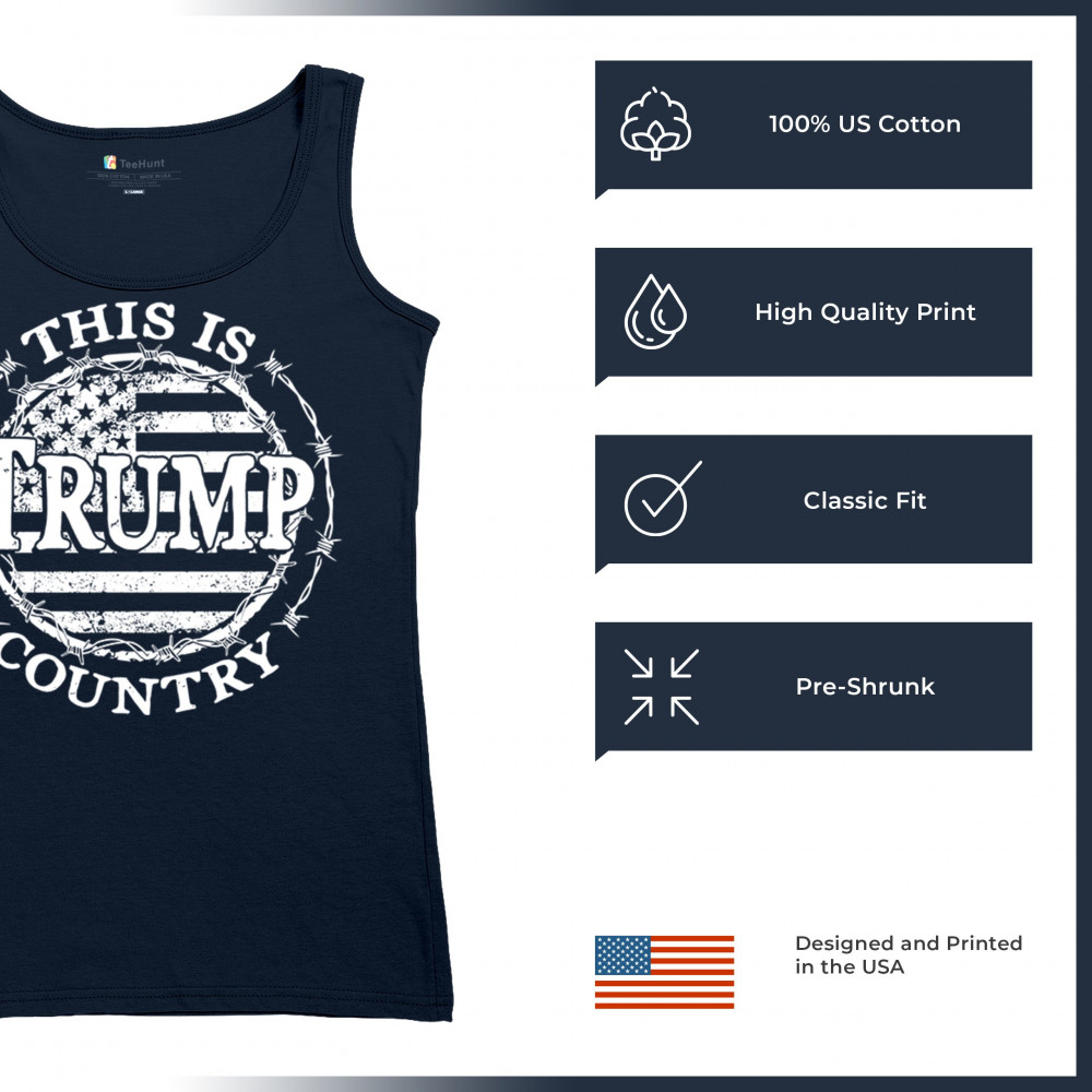 Celebrate your unwavering support for Trump and JD Vance with our exclusive "Trump Country" design. Featuring a vintage American flag encircled by barbed wire, this piece makes a strong statement against Kamala Harris and her policies. It's perfect for conservatives who believe in the America First movement. Whether you're attending a rally, political event, or simply expressing your patriotism, this design is ideal for showcasing your values and support for Trump's vision for America.
