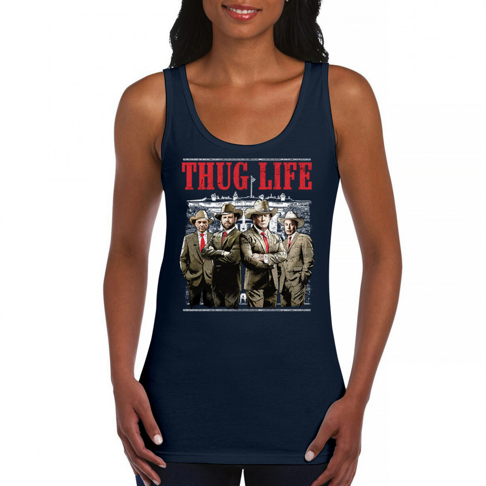 Make a statement with the Thug Life T-shirt, a must-have for every Republican and Trump supporter who stands for America First. Designed for those who believe in We The People Have Spoken, this shirt is perfect for rallies, events, or everyday wear. Featuring bold imagery and high-quality materials, it's a tribute to conservative values, the Red Wave, and the party of common sense. Get yours today and show your patriotic spirit.