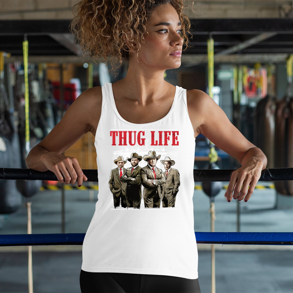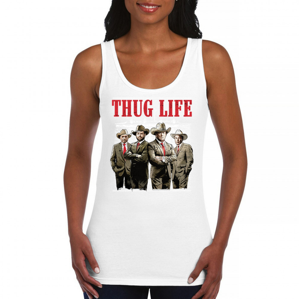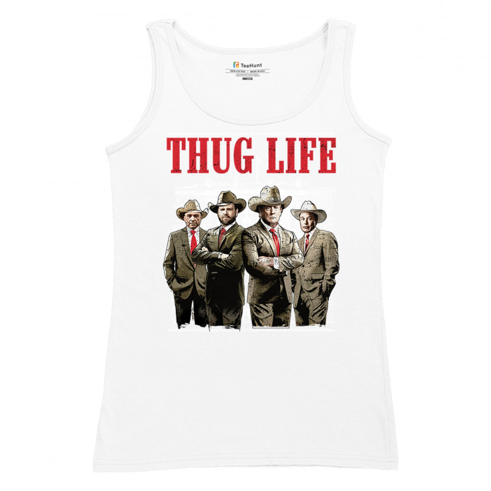 Make a statement with the Thug Life T-shirt, a must-have for every Republican and Trump supporter who stands for America First. Designed for those who believe in We The People Have Spoken, this shirt is perfect for rallies, events, or everyday wear. Featuring bold imagery and high-quality materials, it's a tribute to conservative values, the Red Wave, and the party of common sense. Get yours today and show your patriotic spirit.