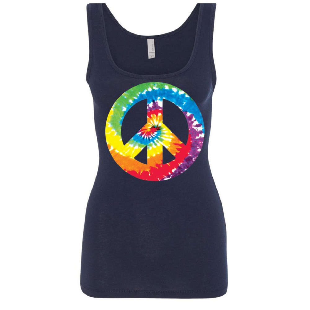 TIE DYE PEACE SYMBOL 80'S women's tank top hippie happiness love not war top navy blue