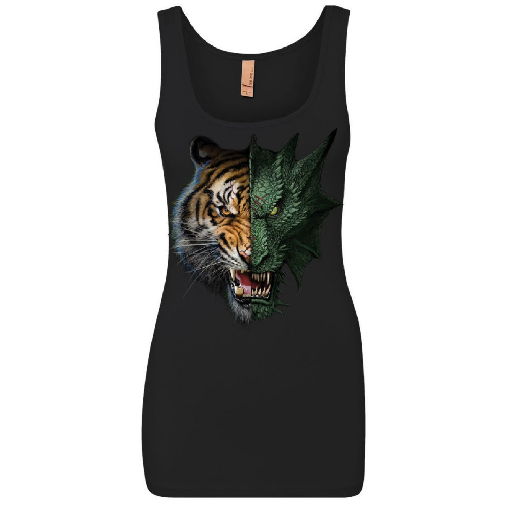 TIGER DRAGON FACE tiger and dragon face women's tank top animal beast fantasy monster fang top black