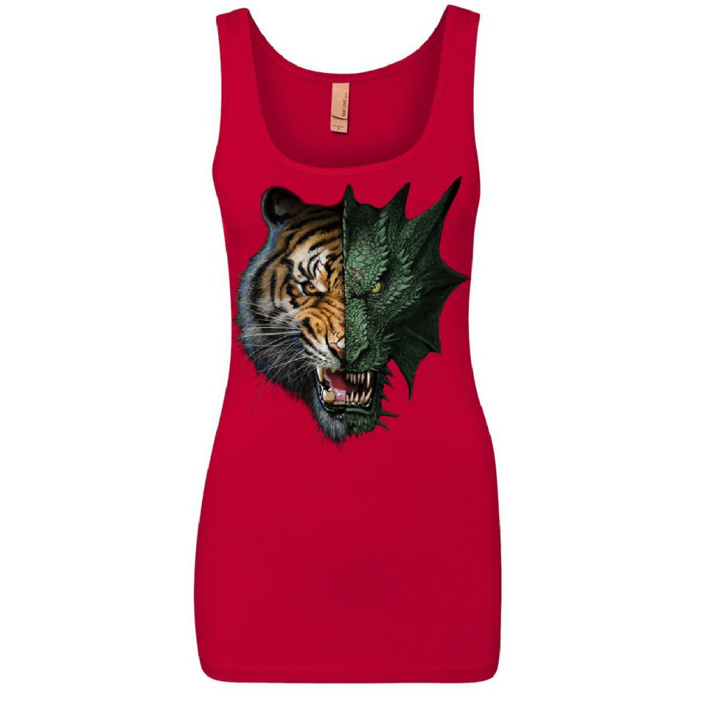 TIGER DRAGON FACE tiger and dragon face women's tank top animal beast fantasy monster fang top red