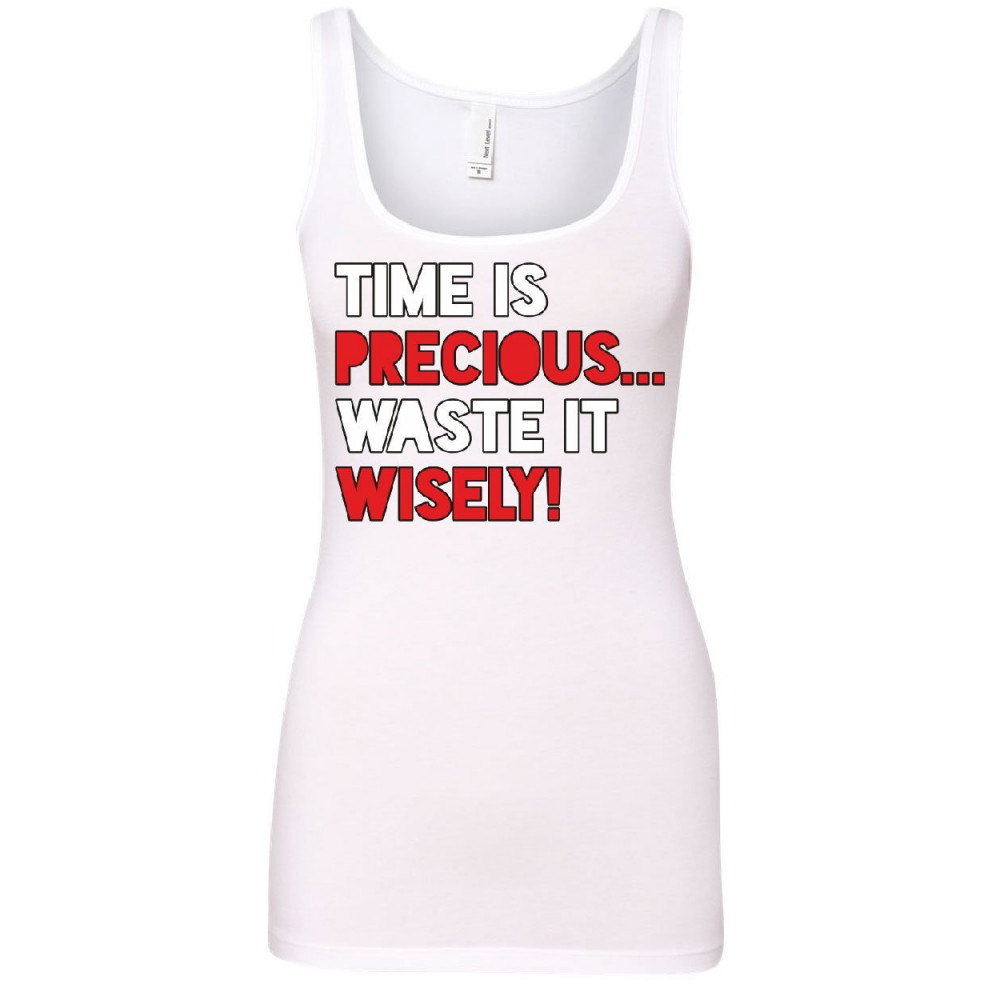 TIME IS PRECIOUS WASTE IT WISELY! time is precious waste it wisely women's tank top college humor lazy fun top white