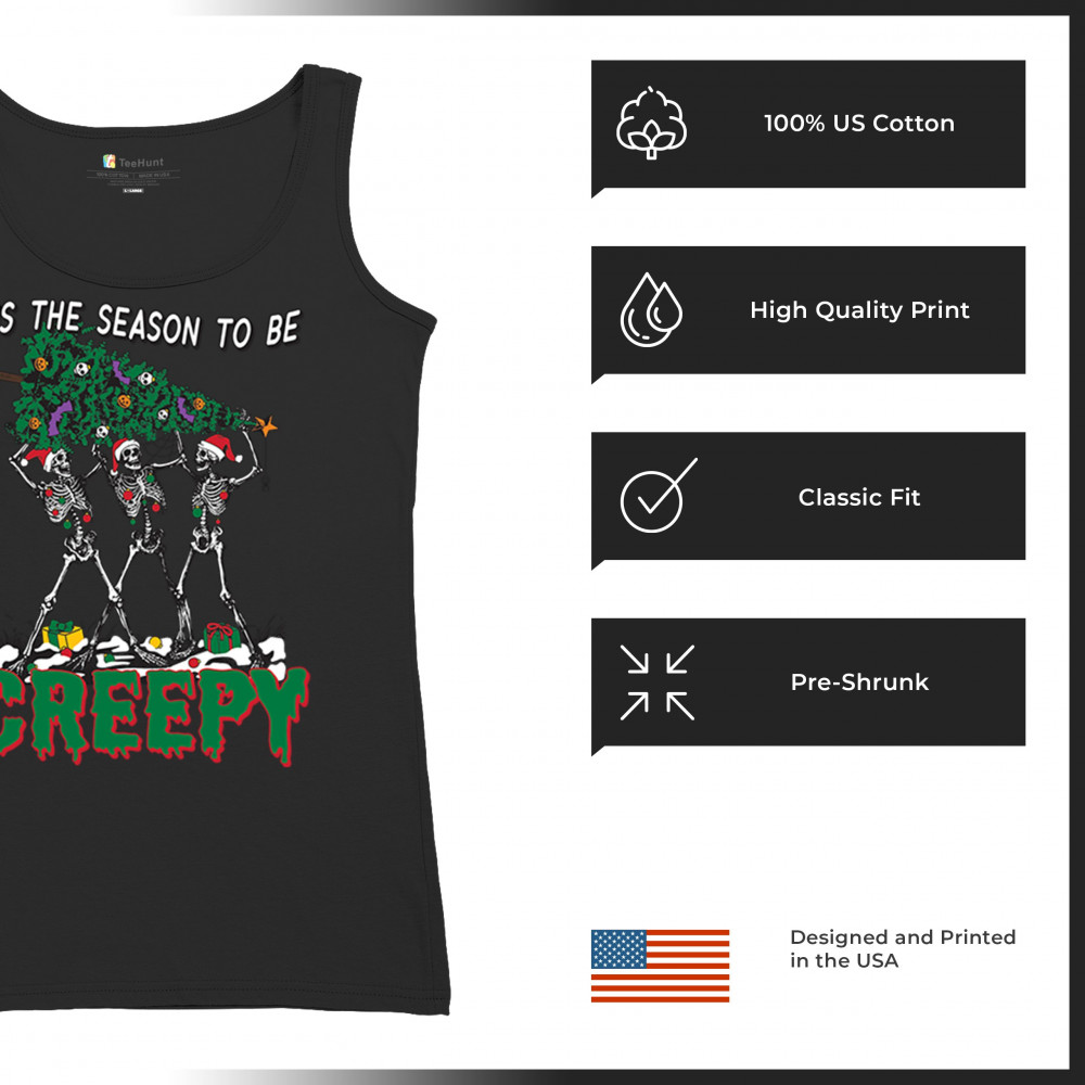 Spooky meets festive with "Tis the Season to Be Creepy" skeleton Christmas design. Perfect for holiday parties, Secret Santa, and unique gifts.