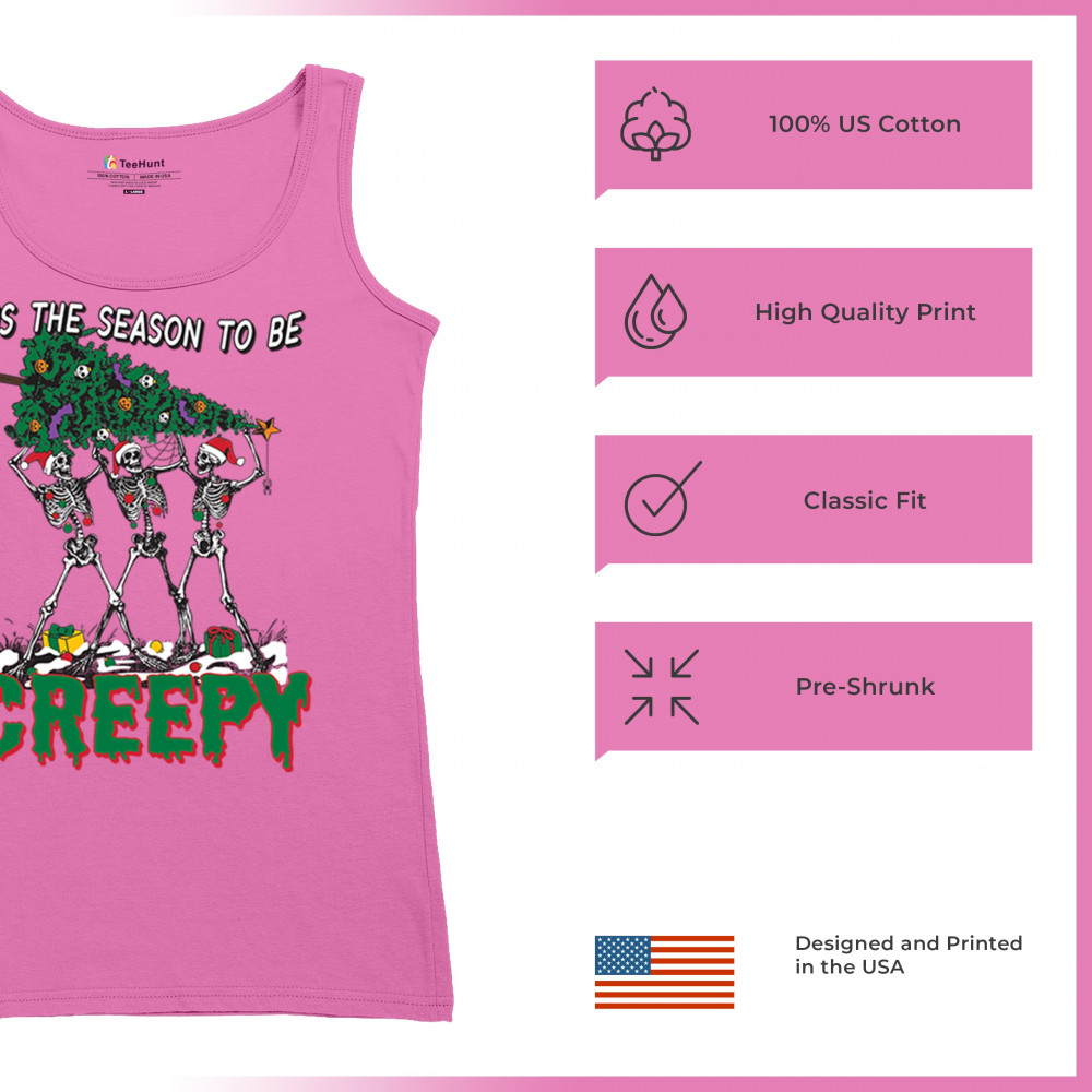 Spooky meets festive with "Tis the Season to Be Creepy" skeleton Christmas design. Perfect for holiday parties, Secret Santa, and unique gifts.