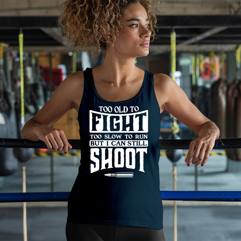 TOO SLOW TO RUN BUT CAN STILL SHOOT women's tank top 2nd amendment gun right navy blue