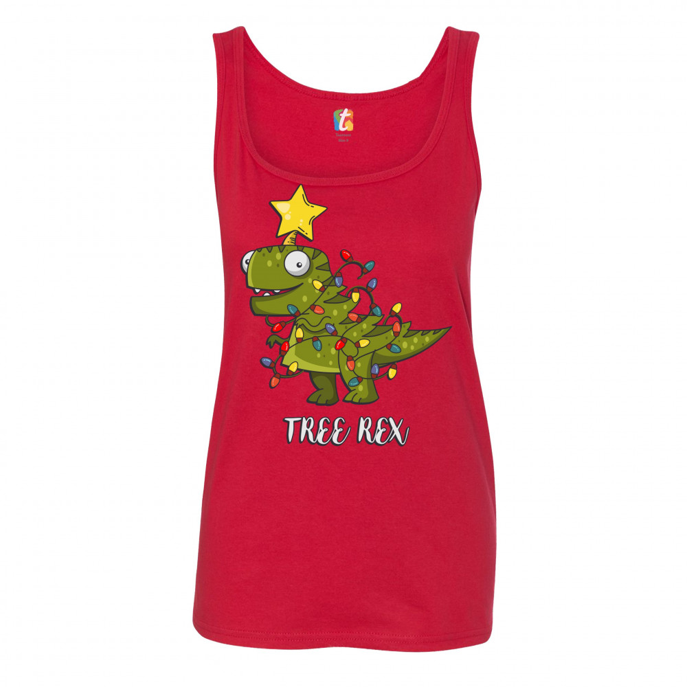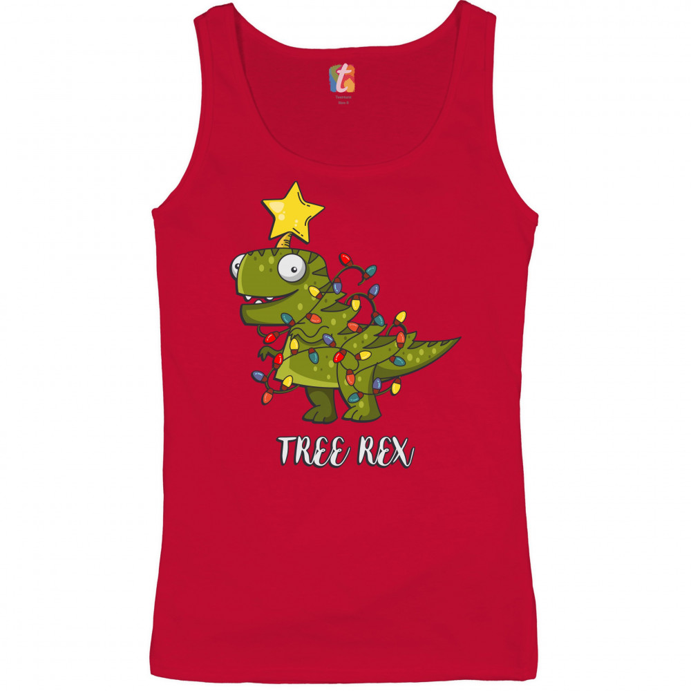 TREE REX women's tank top funny tyronnasaurus rex christmas tree dinosaur red