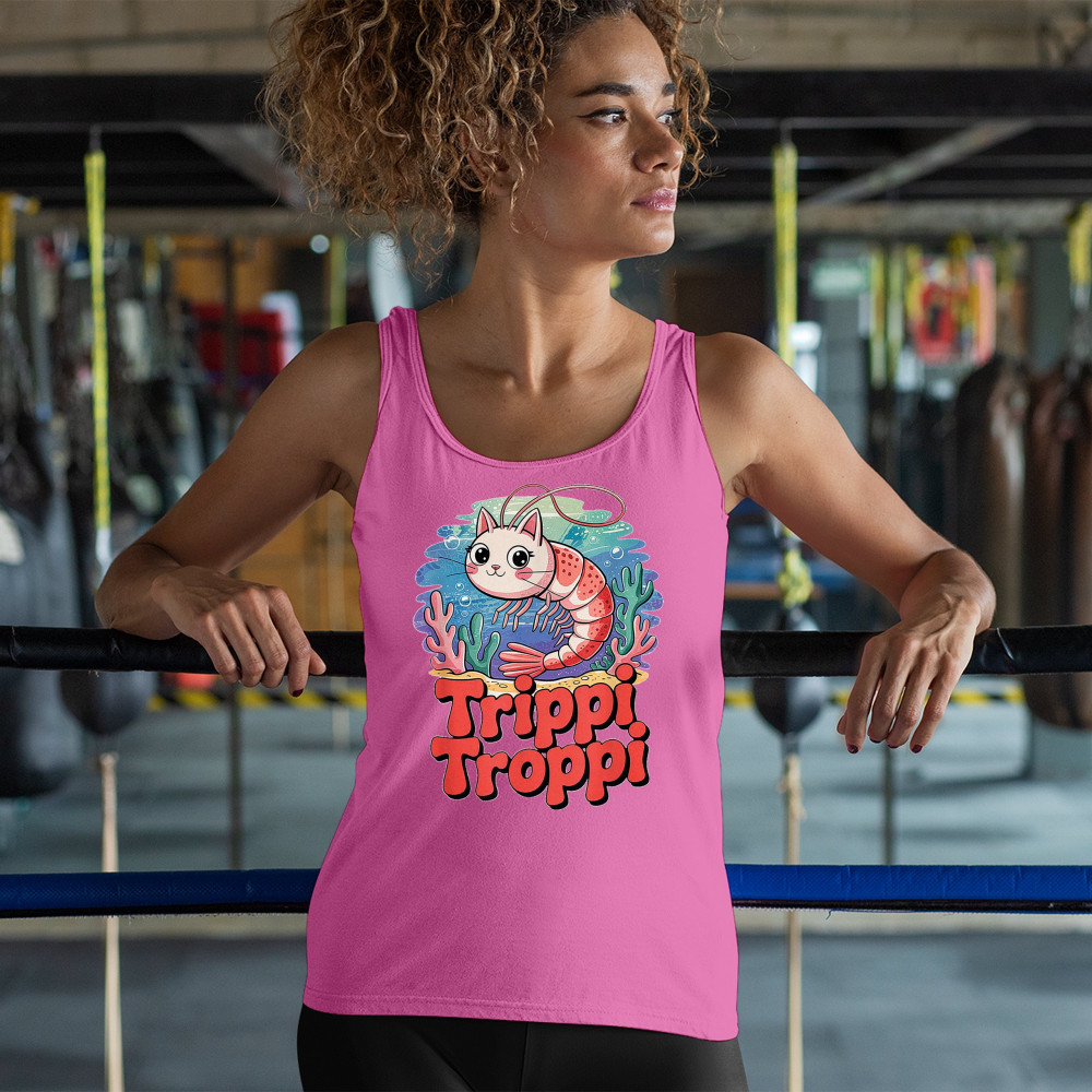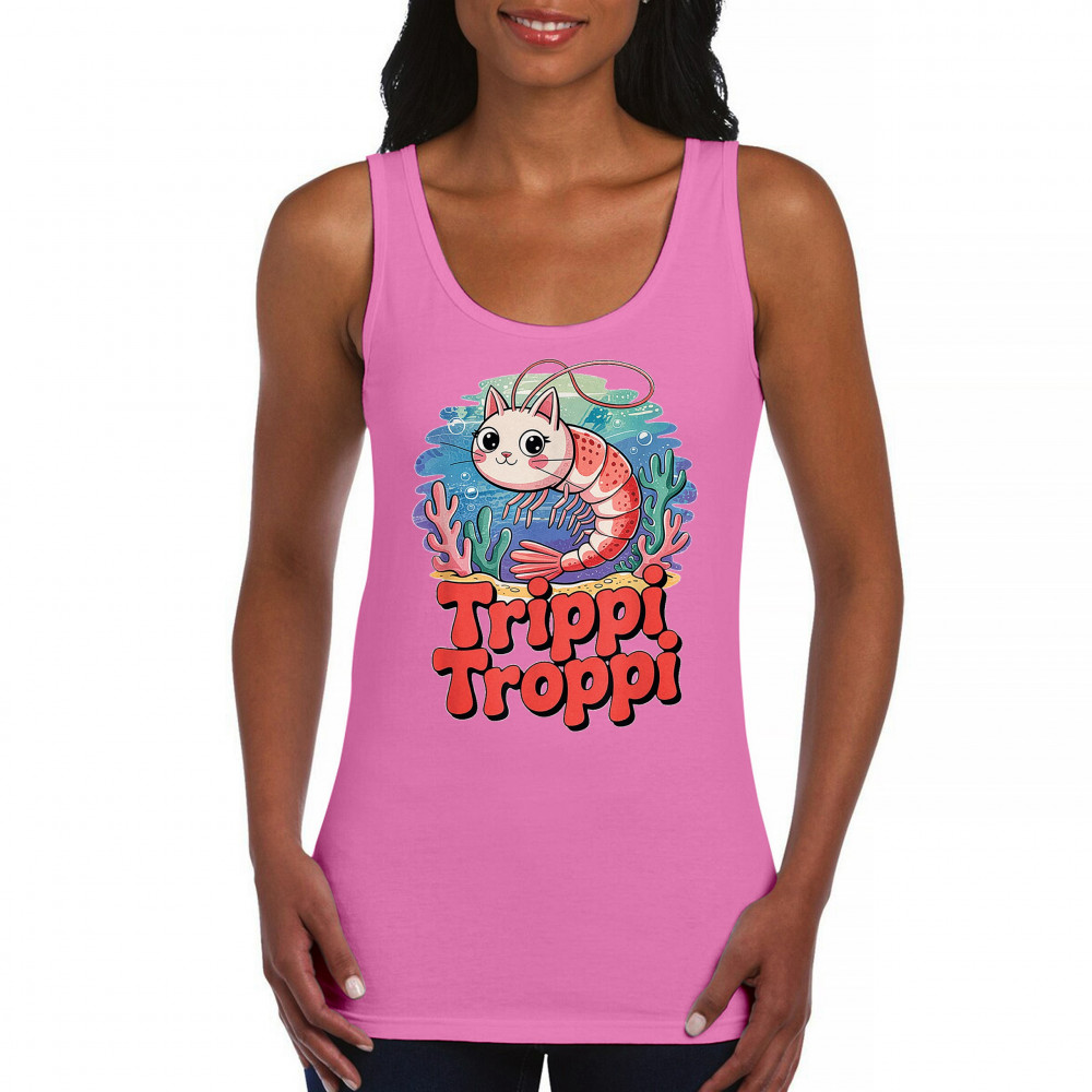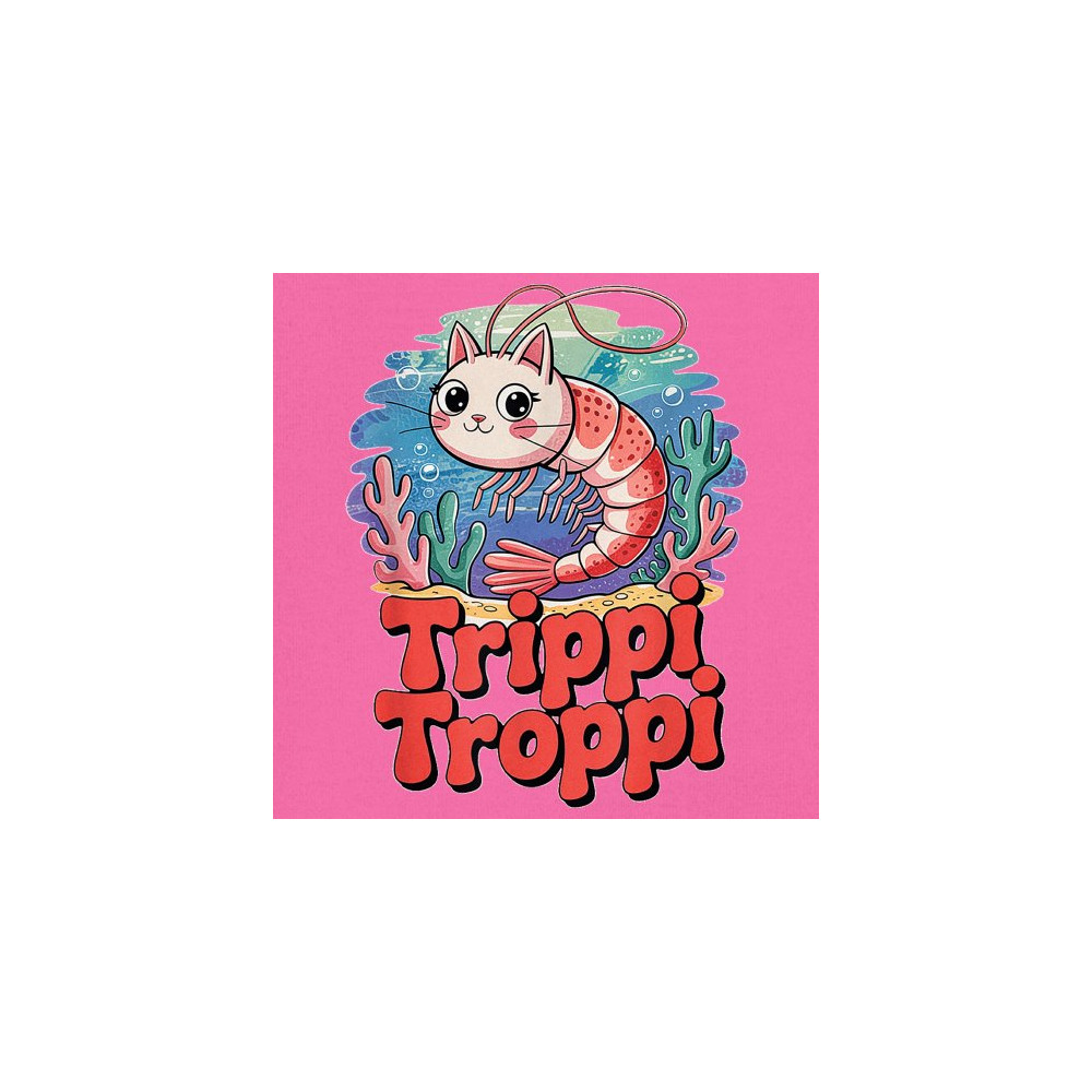 Dive deep into absurdity with Trippi Troppi—a surreal shrimp-cat fusion straight out of Italian Brainrot territory. This design captures cursed animal chaos, weirdcore visuals, TikTok meme culture, and underwater fever dream aesthetics. Made for Gen Z humor addicts, ocean meme fans, and ironic fashion lovers alike.