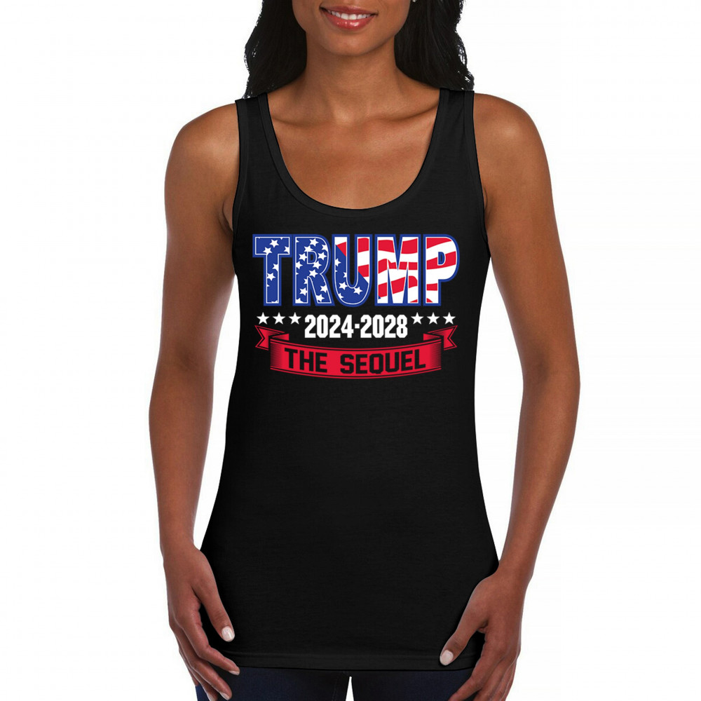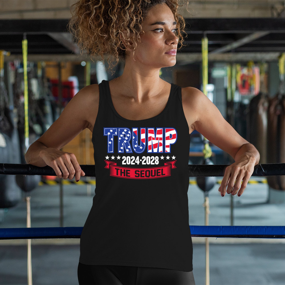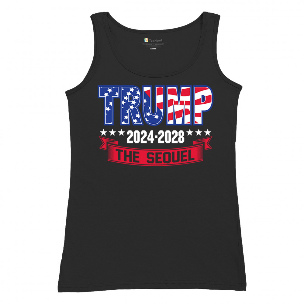 Stand with Trump for 2024-2028 in "The Sequel" design, celebrating America First, conservative values, and 4 more years of patriotic vision.