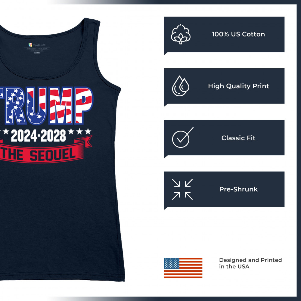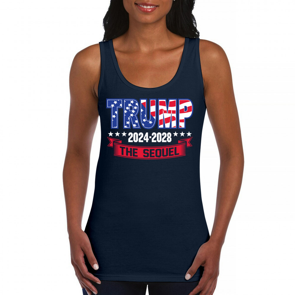 Stand with Trump for 2024-2028 in "The Sequel" design, celebrating America First, conservative values, and 4 more years of patriotic vision.