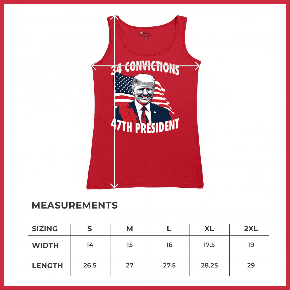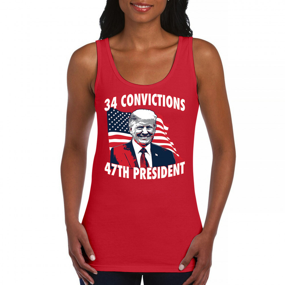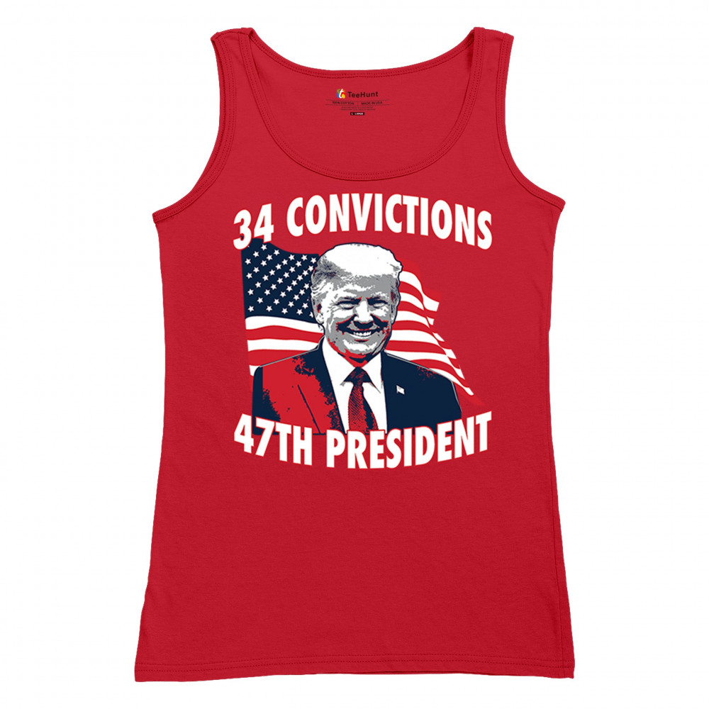 Show your support for Trump's 2024 campaign with the "34 Convictions, 47th President" design. Perfect for rallies, patriotic events, and conservative gatherings.