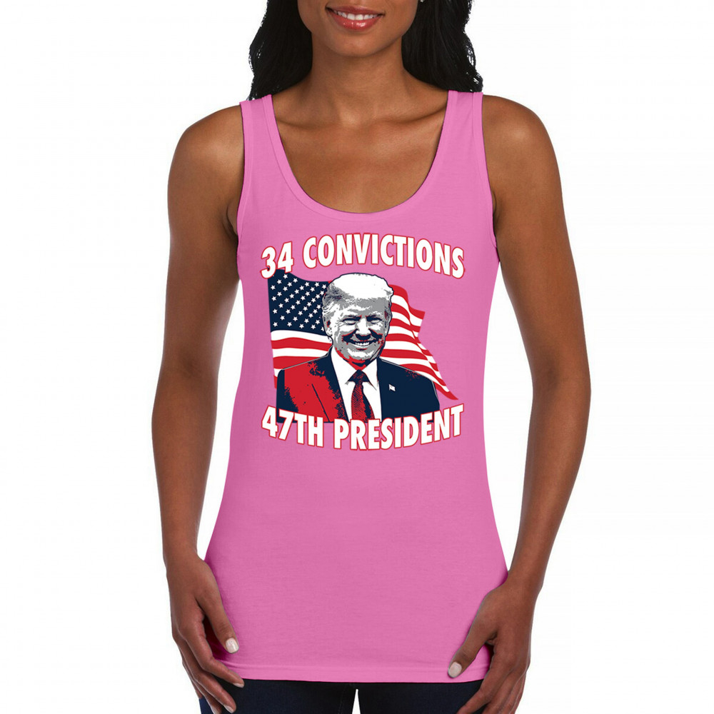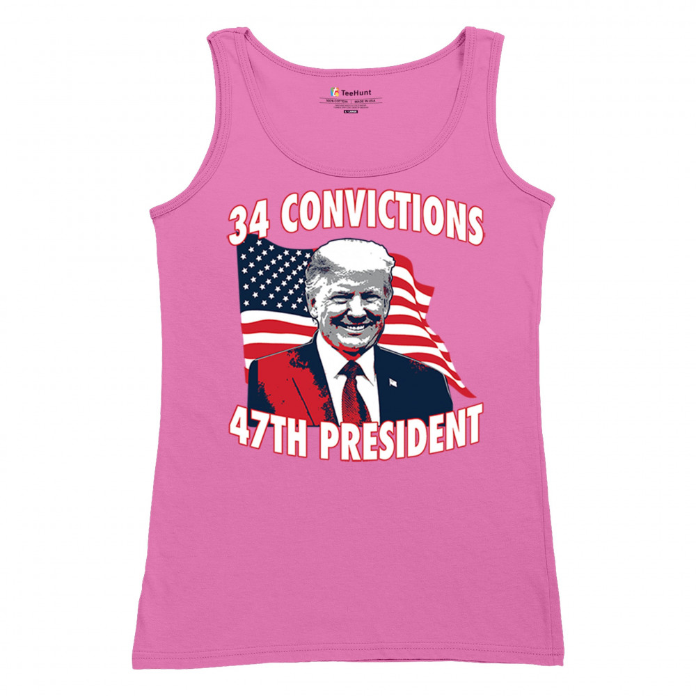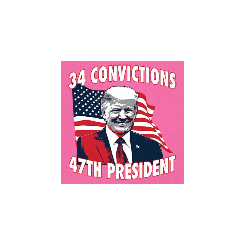 Show your support for Trump's 2024 campaign with the "34 Convictions, 47th President" design. Perfect for rallies, patriotic events, and conservative gatherings.