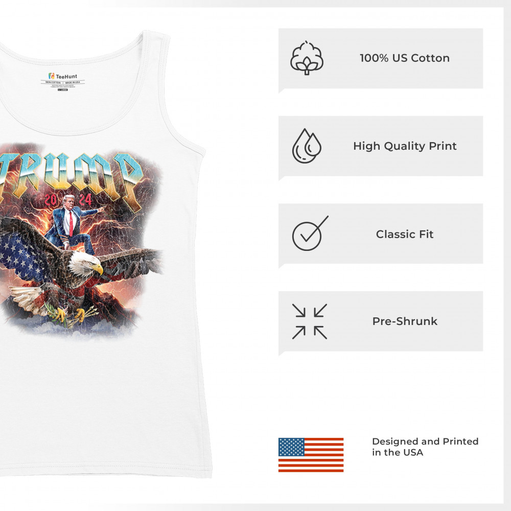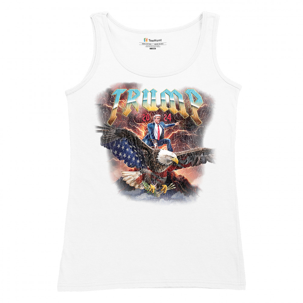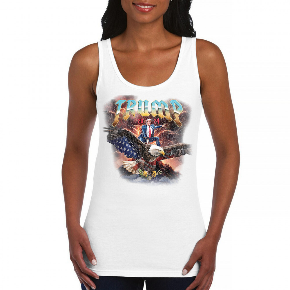 Stand out with our "Trump 2024" design featuring Trump riding an eagle. Perfect for rallies and patriotic events. Show your support with pride and confidence.