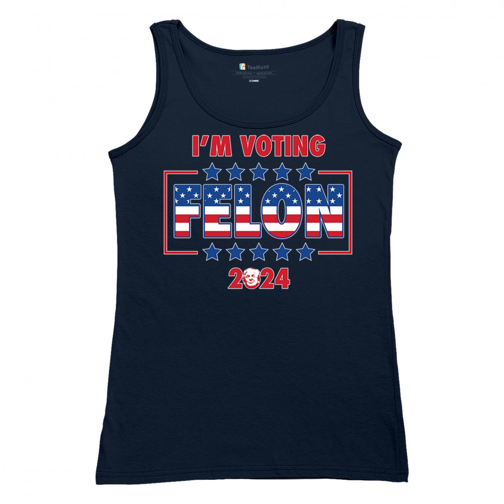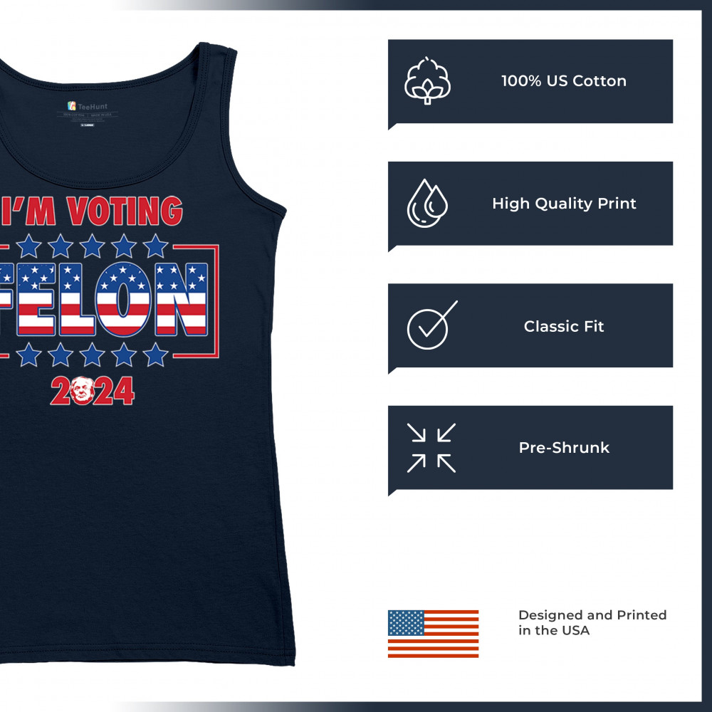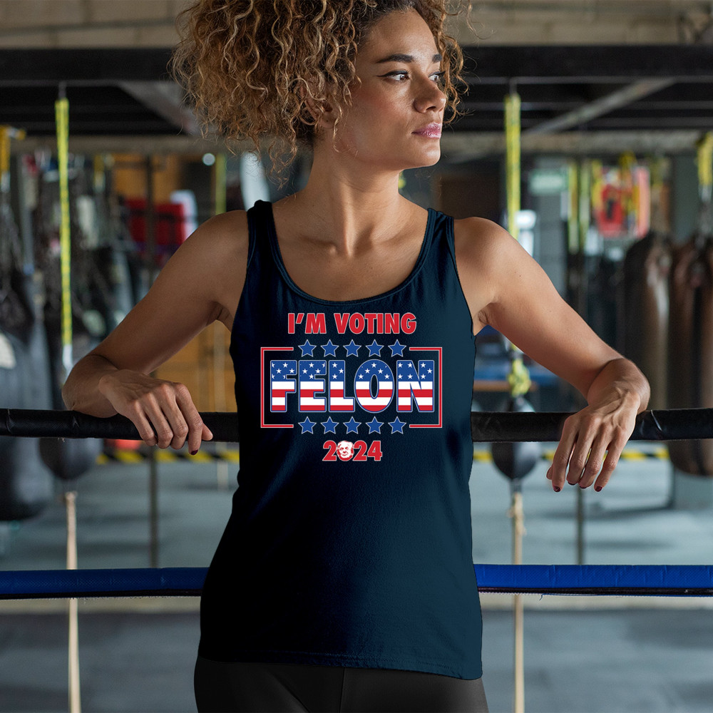 Show your support with the "I'm Voting Felon 2024" design, perfect for conservative patriots and Trump supporters. Featuring an American flag motif.