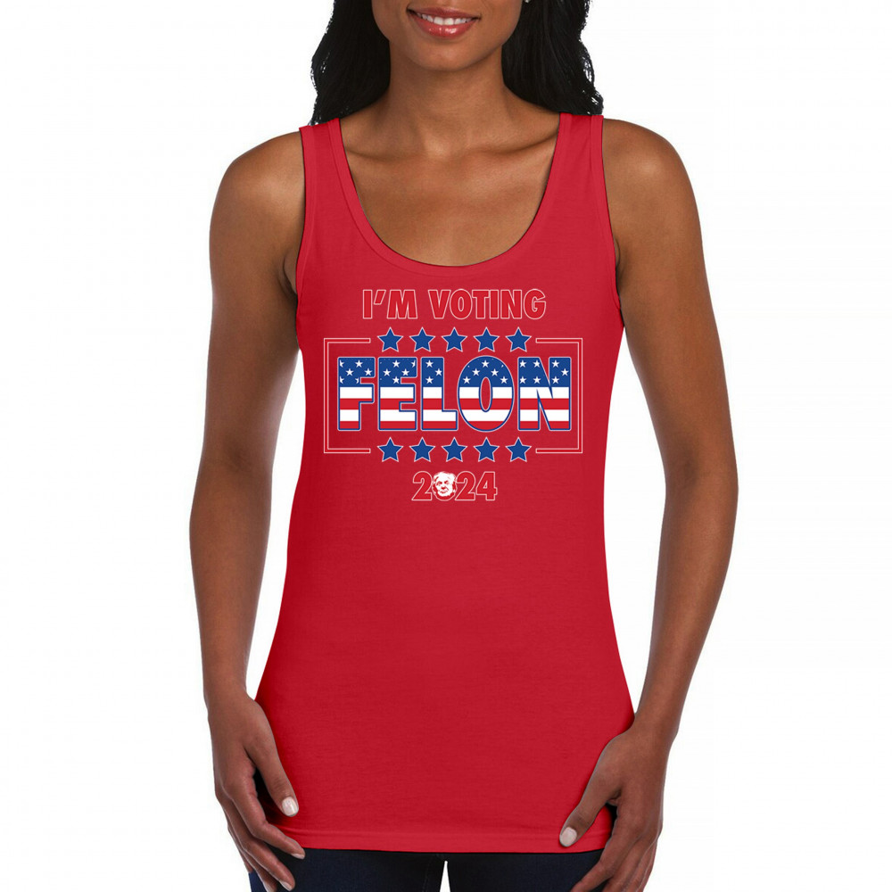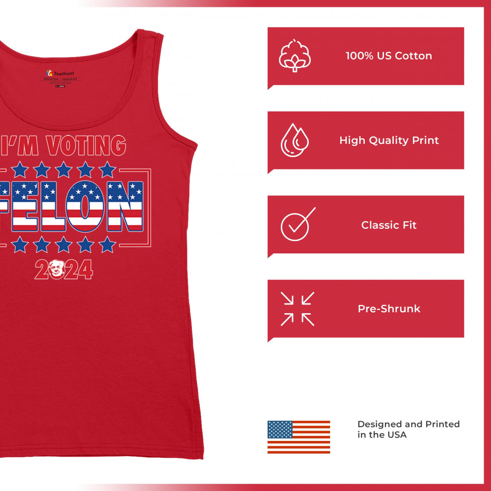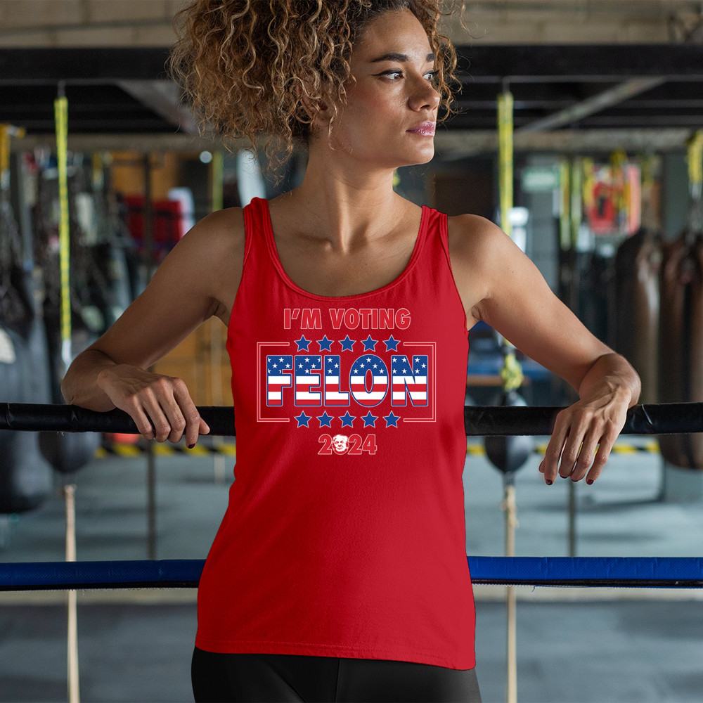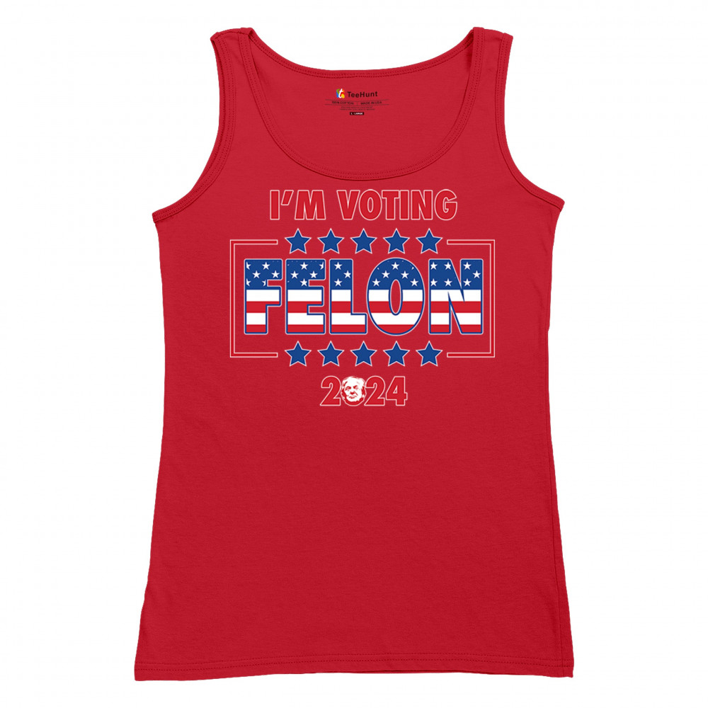 Show your support with the "I'm Voting Felon 2024" design, perfect for conservative patriots and Trump supporters. Featuring an American flag motif.