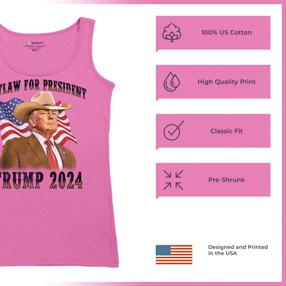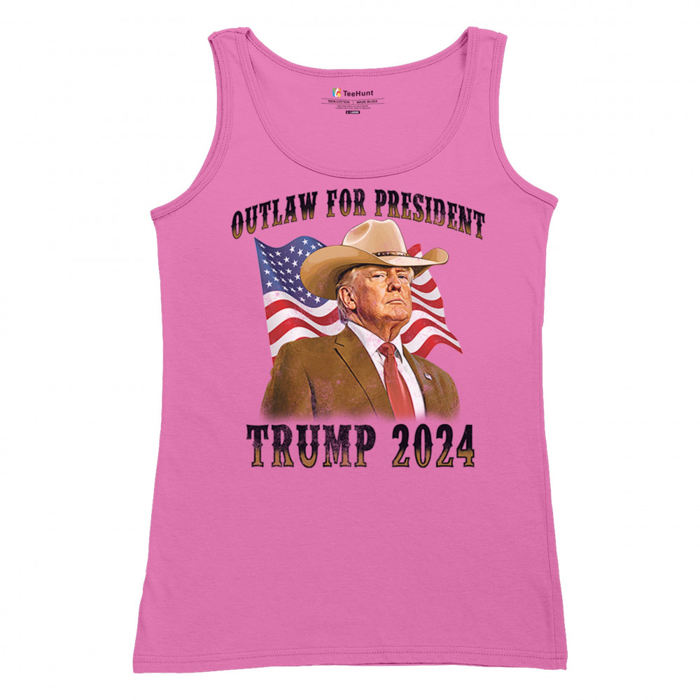 Support Trump with our "Outlaw for President" design. Featuring Trump in a cowboy hat, this piece symbolizes strength amidst political challenges. Join the fight for conservative values!
