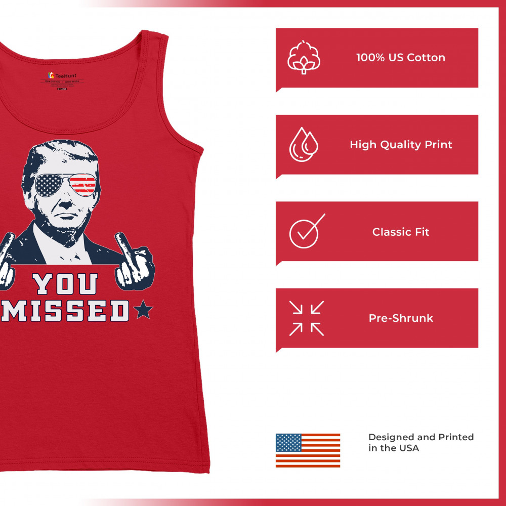 Celebrate Trump's resilience with this bold "You Missed" design. Perfect for rallies and political events. Show your unwavering support for conservative values.