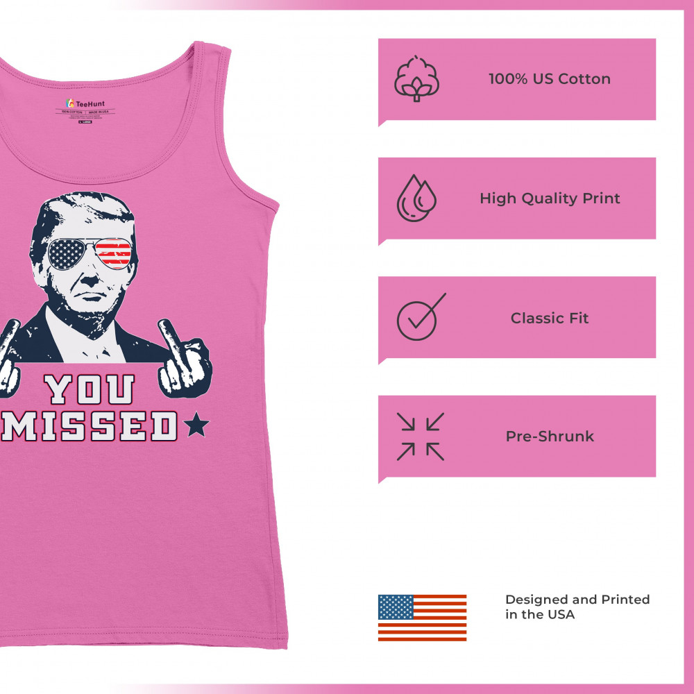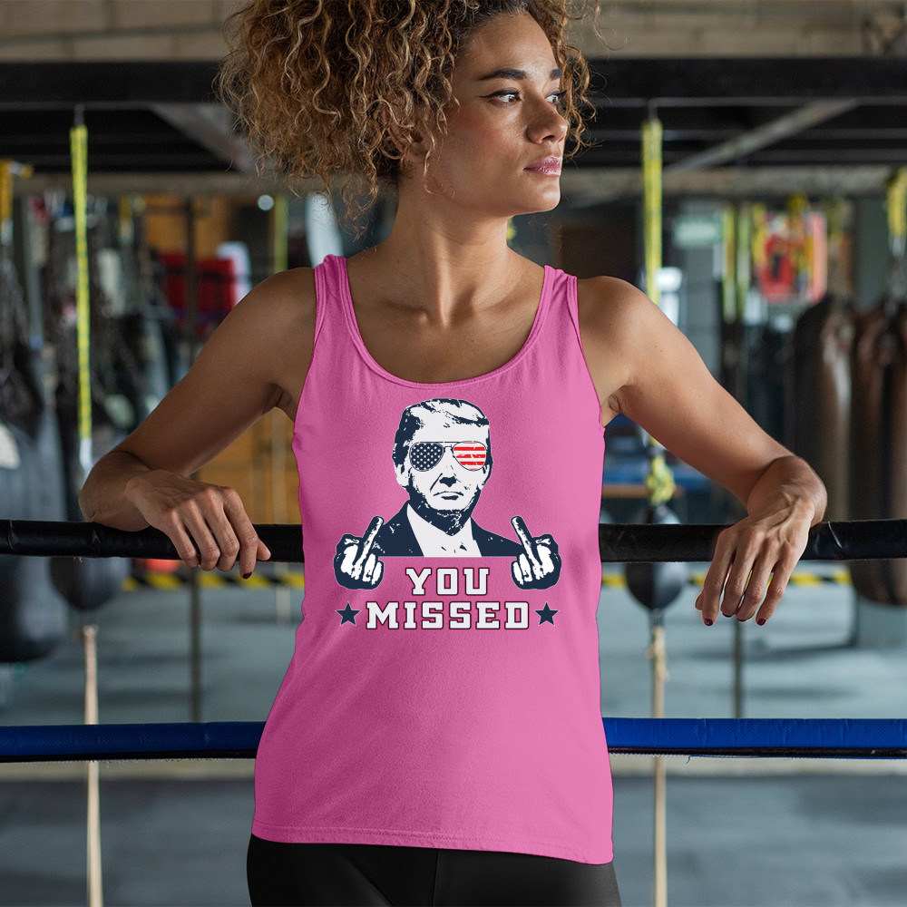 Celebrate Trump's resilience with this bold "You Missed" design. Perfect for rallies and political events. Show your unwavering support for conservative values.