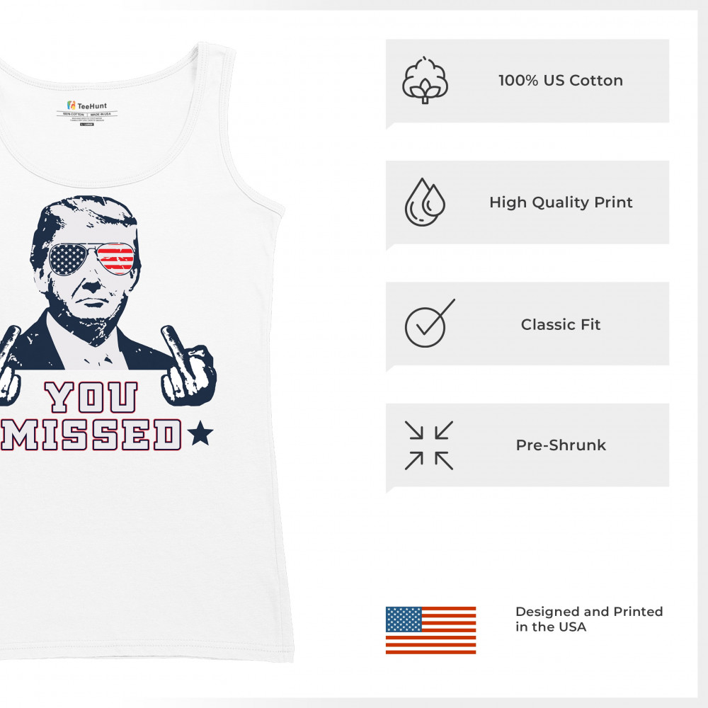 Celebrate Trump's resilience with this bold "You Missed" design. Perfect for rallies and political events. Show your unwavering support for conservative values.