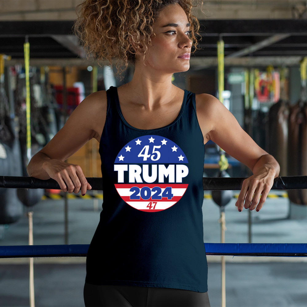Embrace your conservative pride with this bold "45 TRUMP 2024" design. Representing America First, Republican victory, and the people’s mandate, it’s the perfect way to showcase your support for Donald J. Trump’s historic journey to the 47th presidency. Whether at rallies, political events, or casual outings, this emblem unites Trump supporters in a fight for freedom and patriotism.