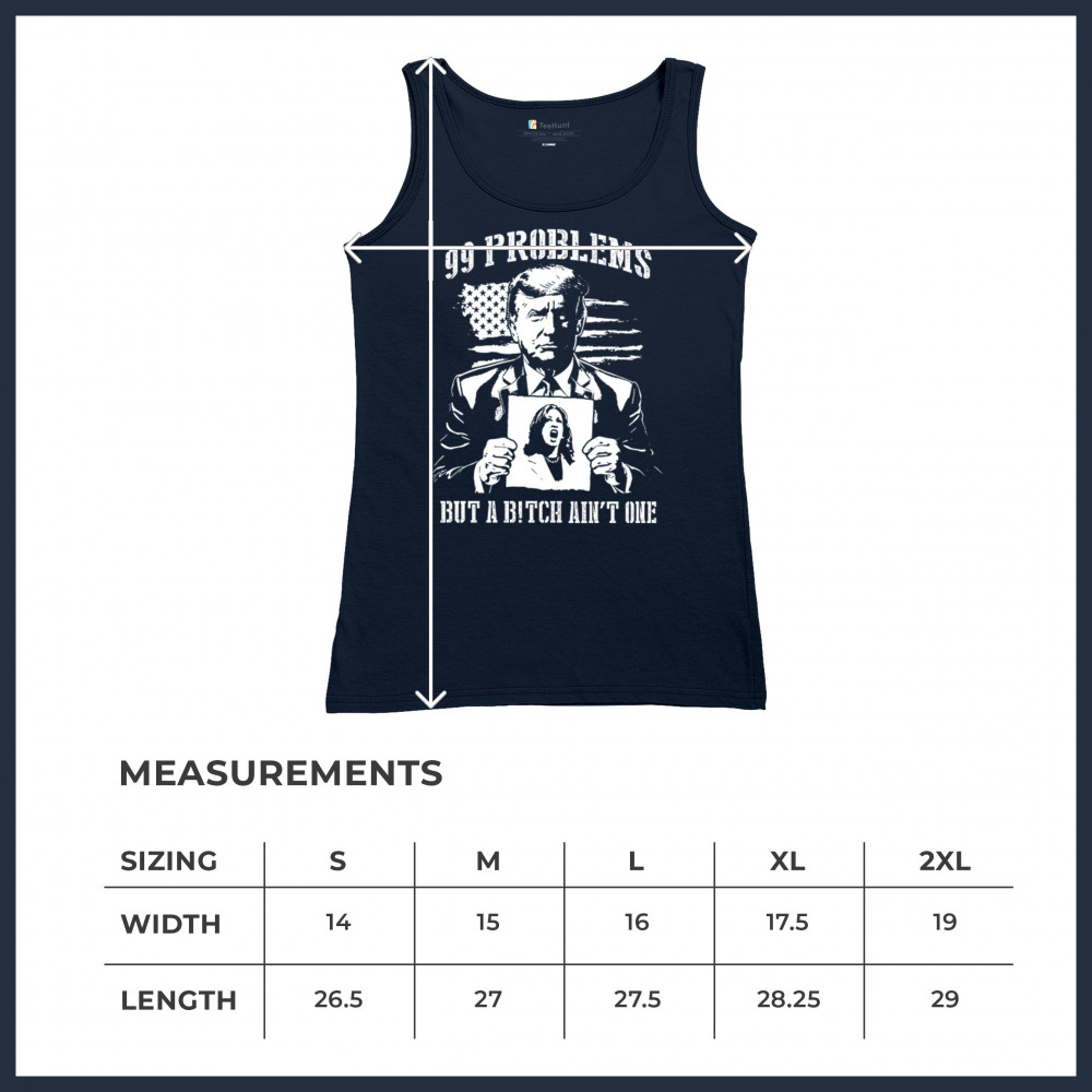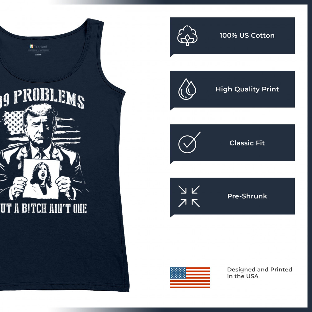 Bold conservative "99 Problems But a B*tch Ain’t One" design featuring Donald J. Trump and an American flag. Perfect for proud Republicans and patriots.