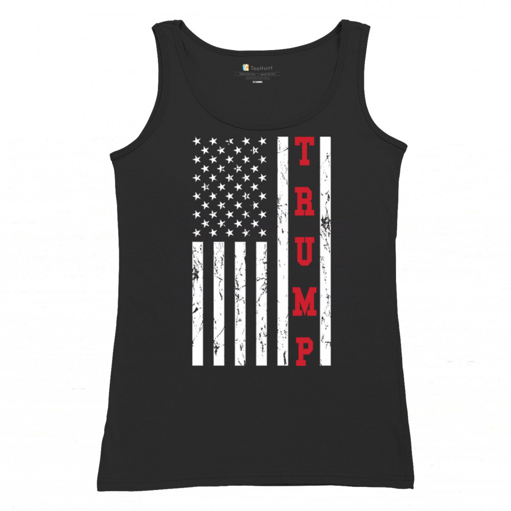 how your unwavering support for America First policies with our Trump 2024 Flag graphic t-shirt. This vintage-inspired design blends the iconic American Flag with bold 'Trump 2024' lettering, symbolizing a commitment to conservative values and the MAGA movement. Whether you're part of the Trump Train or a proud supporter, this shirt is a statement of victory and determination. Let's Go Brandon? More like Let's Go America! Join the Rebelution and make your voice heard with this Republican-themed merchandise.