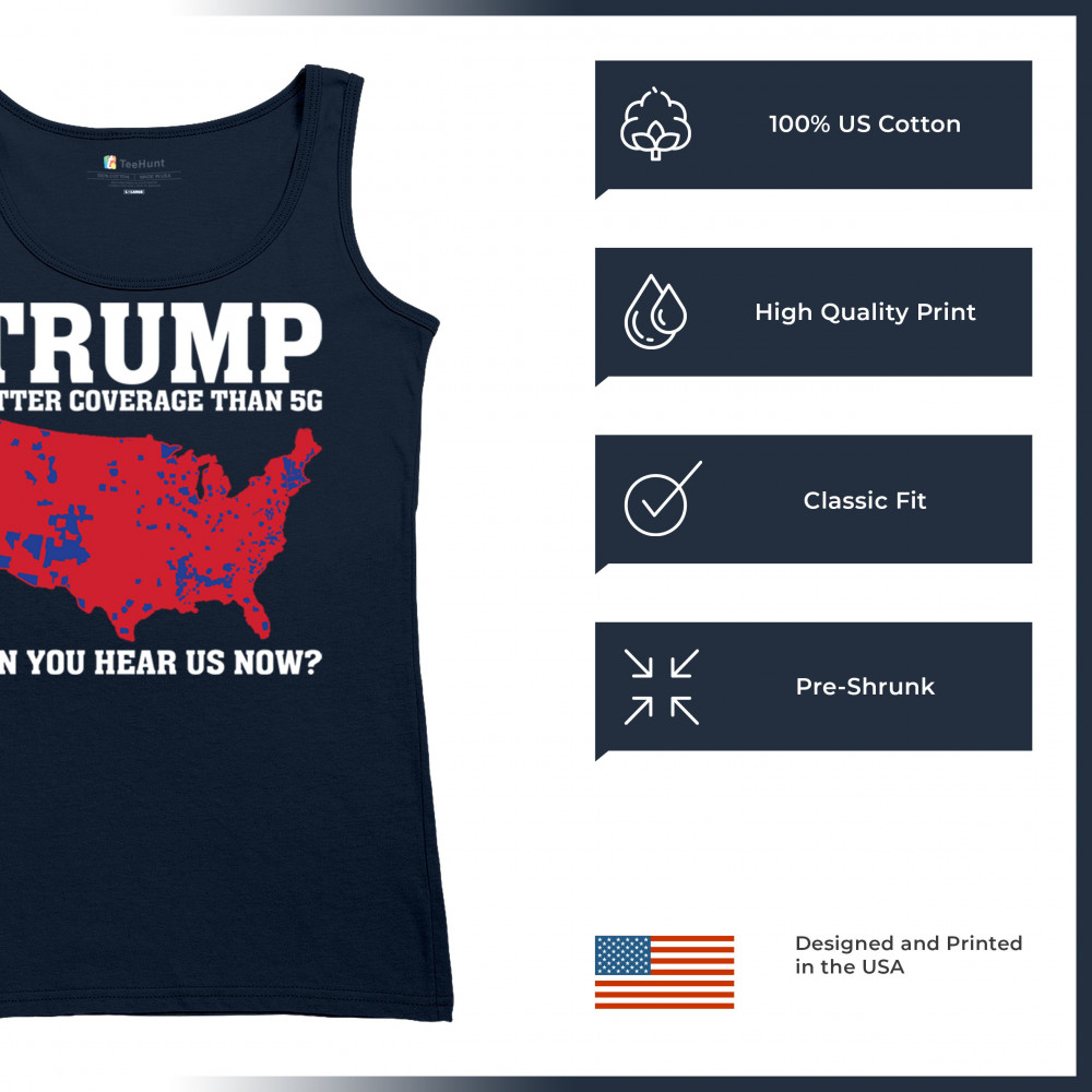 "Trump: Better Coverage Than 5G" design celebrates Republican victory and America First values. Perfect for rallies, events, or gifting patriots.