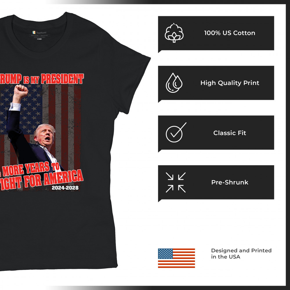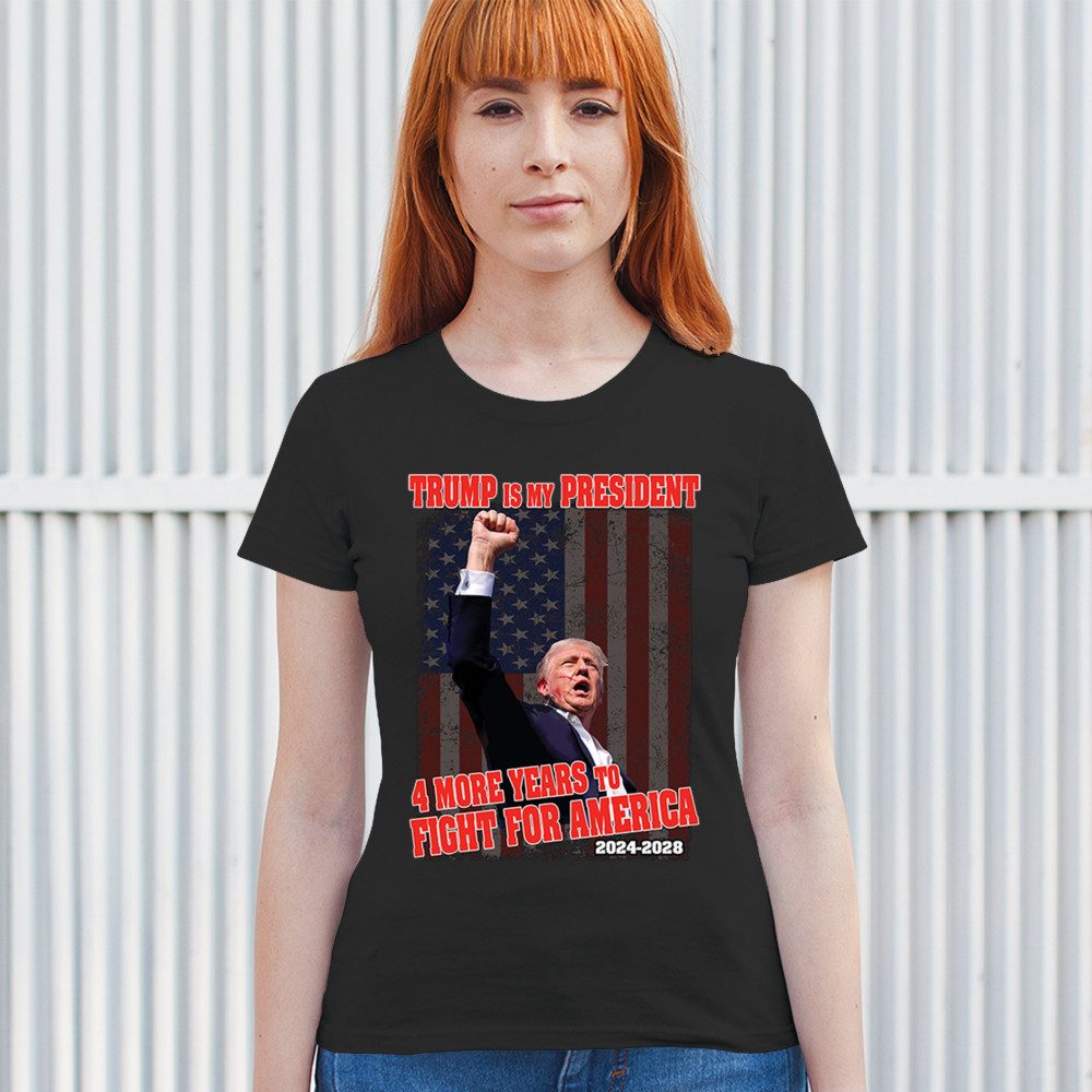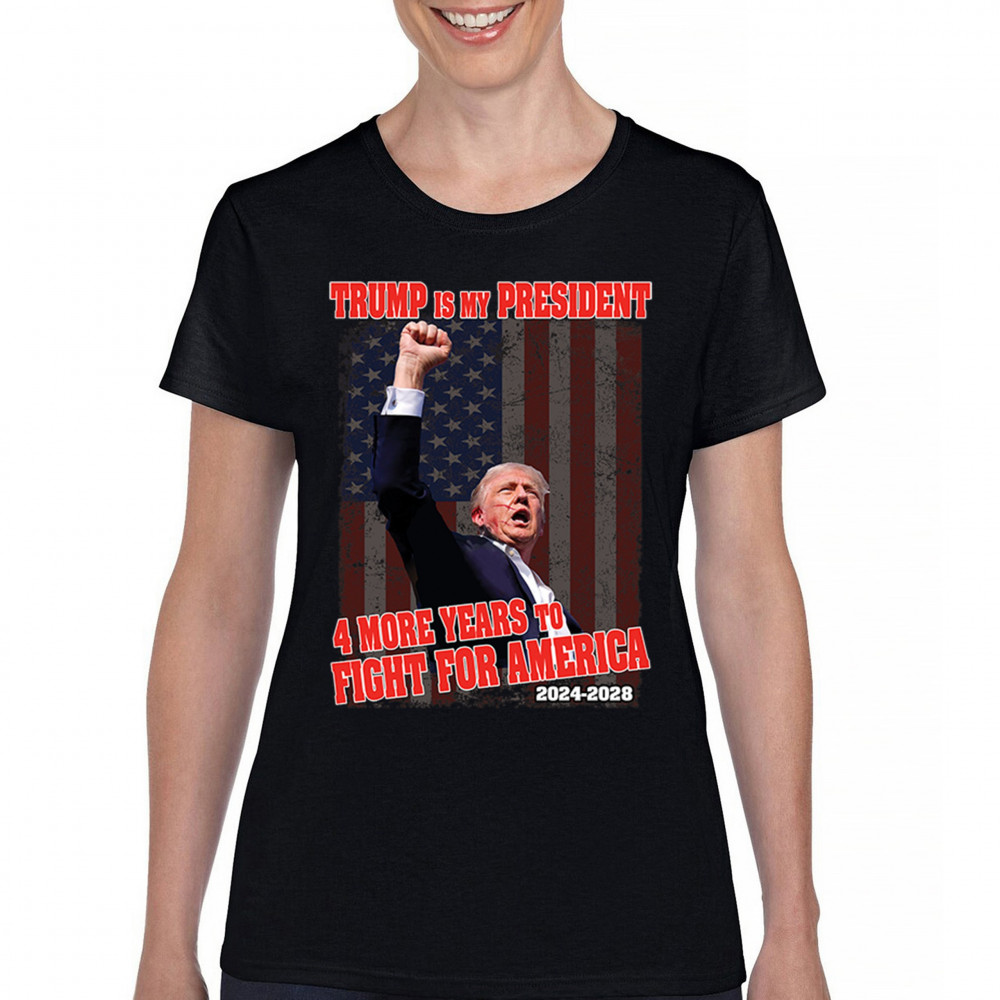 TRUMP IS MY PRESIDENT 4 MORE YEARS FIGHT FOR AMERICA t-shirt maga women's tee black