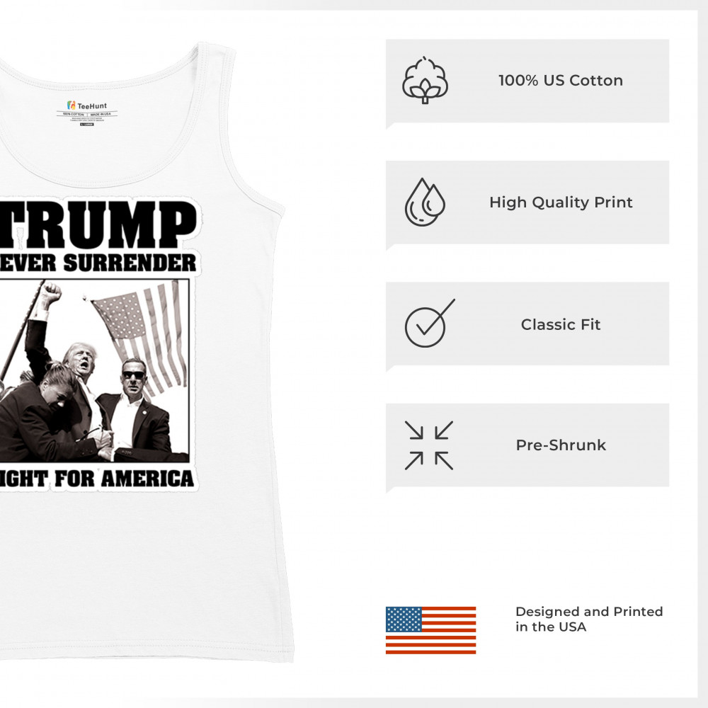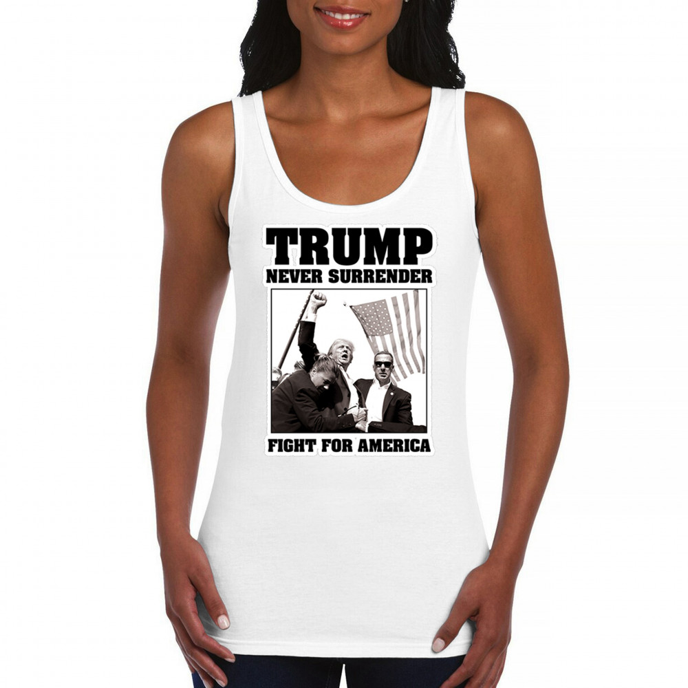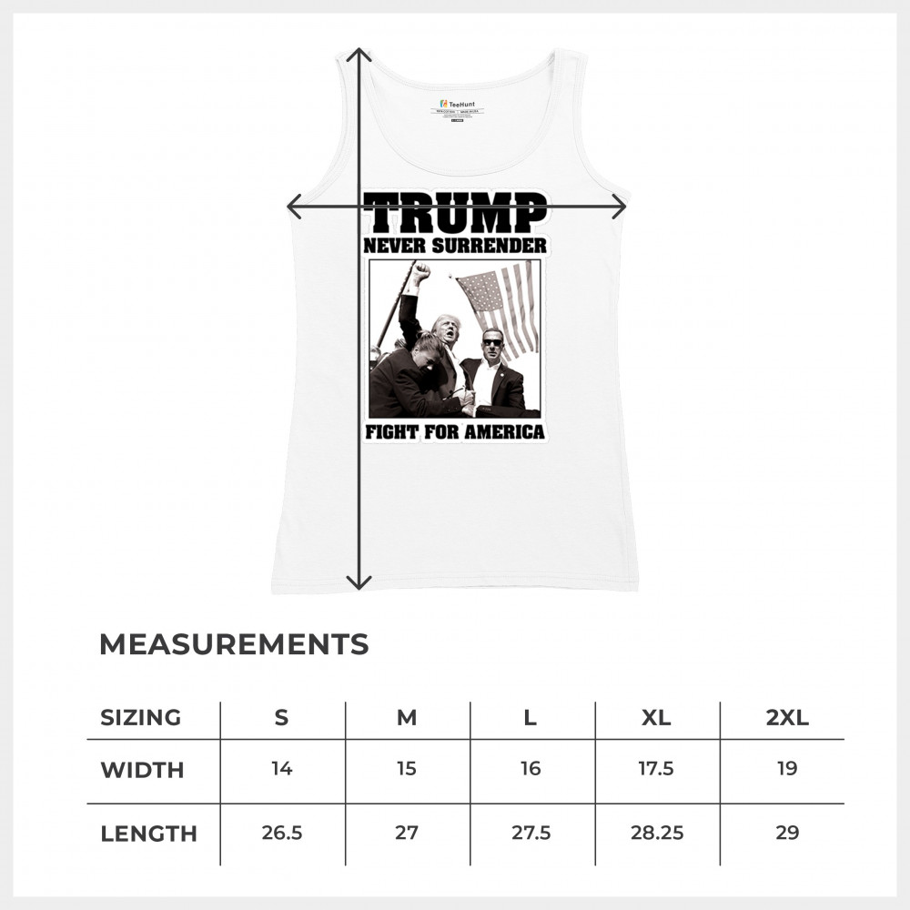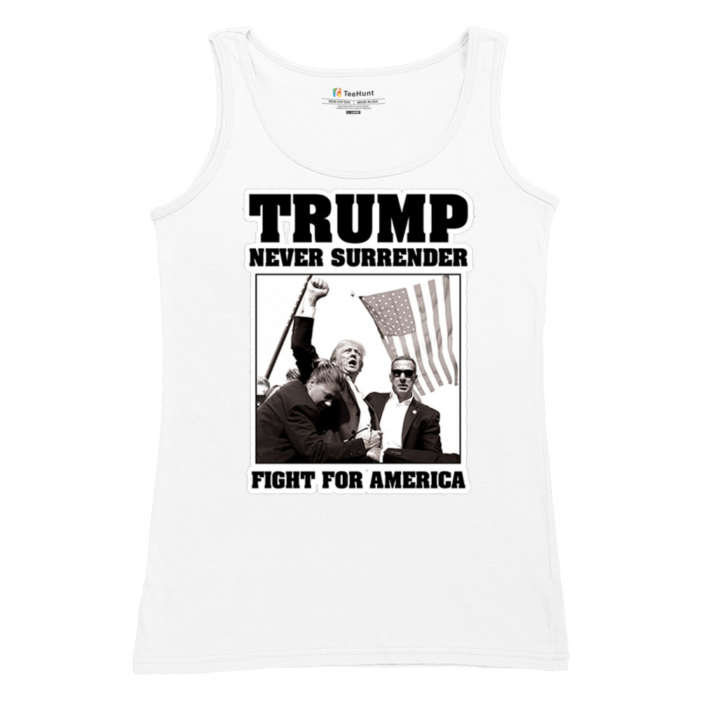 Express your unwavering support with the bold "Trump Never Surrender" design, perfect for rallies and everyday wear. Durable and stylish, show your patriotism proudly.